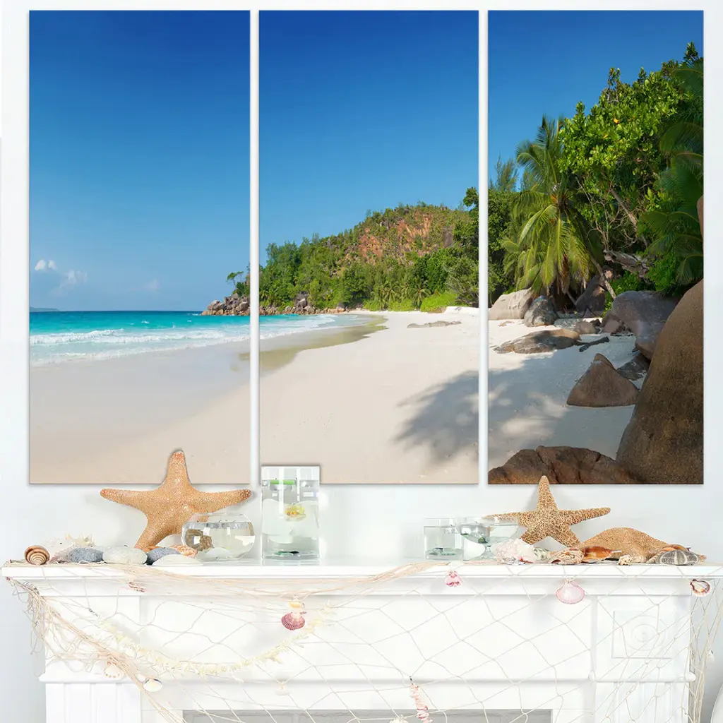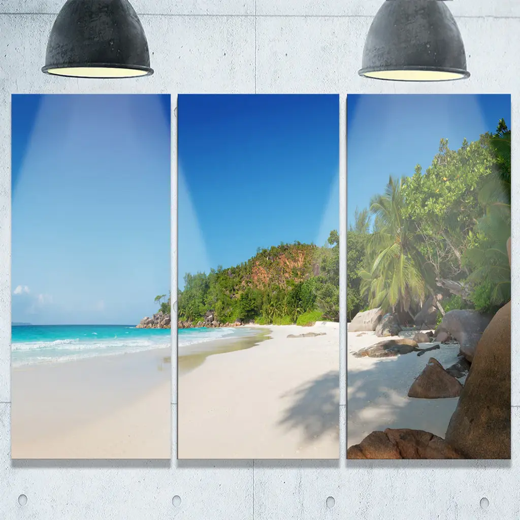 "Anse Georgette Beach Light Blue" Metal Wall Art, 3 Panels, 36"x28"