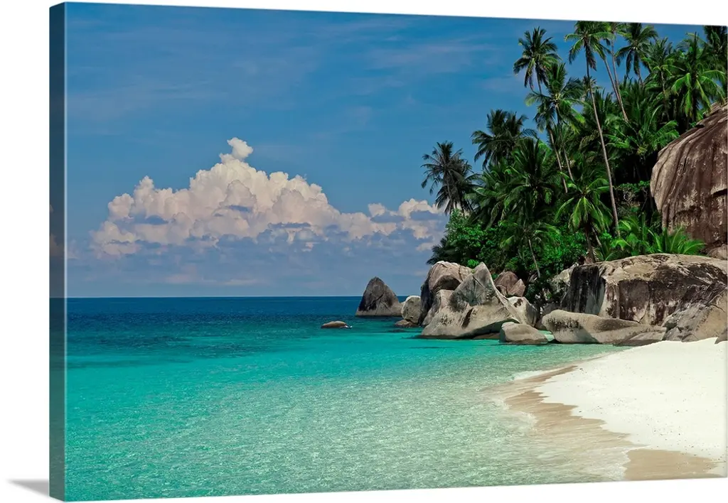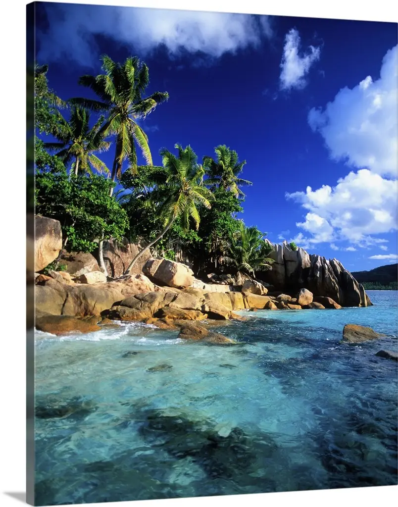 Bring contemporary abstraction to your home with this large 36W x 28H Metal Wall Art. This Anse Lazio Praslin Island Seychelles Metal Artwork makes it the focal point of any room or office. - White gloss coating ensures colors are extra vibrant with light reflection.- Aluminum grade sheet metal with 1-inch mounting frame on the back giving the illusion that the artwork is floating on the wall.- Mounting brackets are included along with instructions.- High quality digital images are created directly into a glossy aluminum panel producing a stunning and captivating print into the glossy finish of the metal.- Water, fire and scratch resistant HD aluminum panels.- Looks better than any photo paper and guaranteed to last at least 20 years- Easy to clean with a microfiber cloth. Colors are far superior to regular canvas art. - Easy to hang