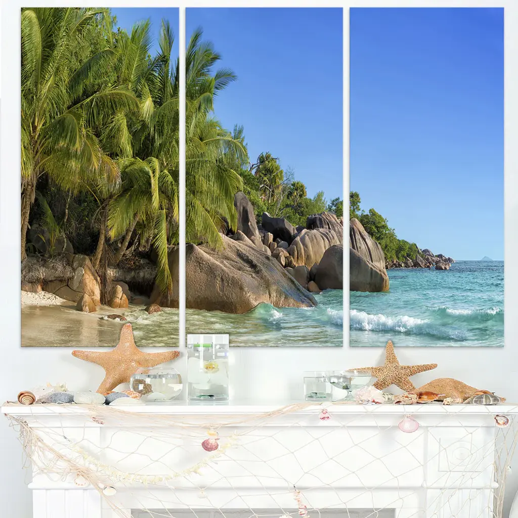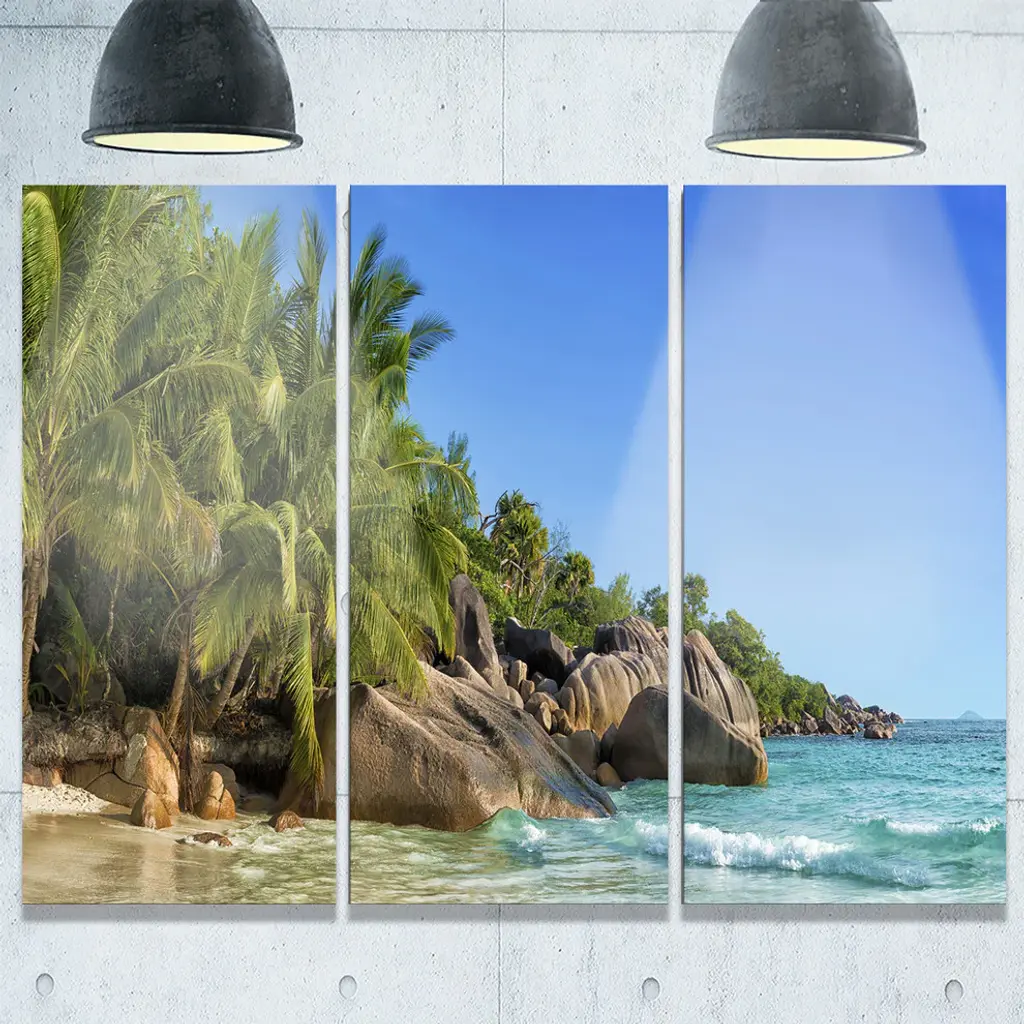"Anse Lazio Praslin Island Seychelles" Metal Wall Art, 3 Panels, 36"x28"