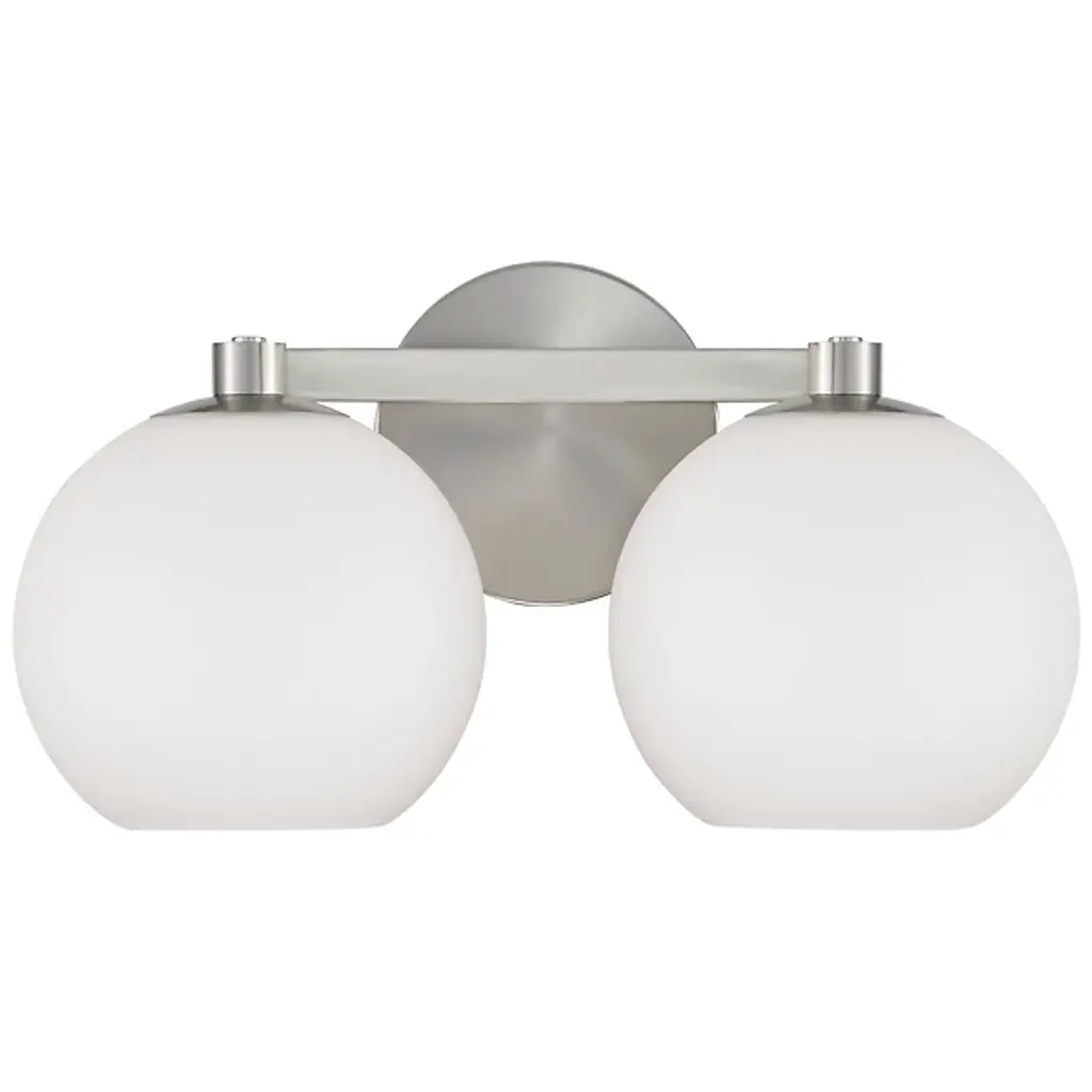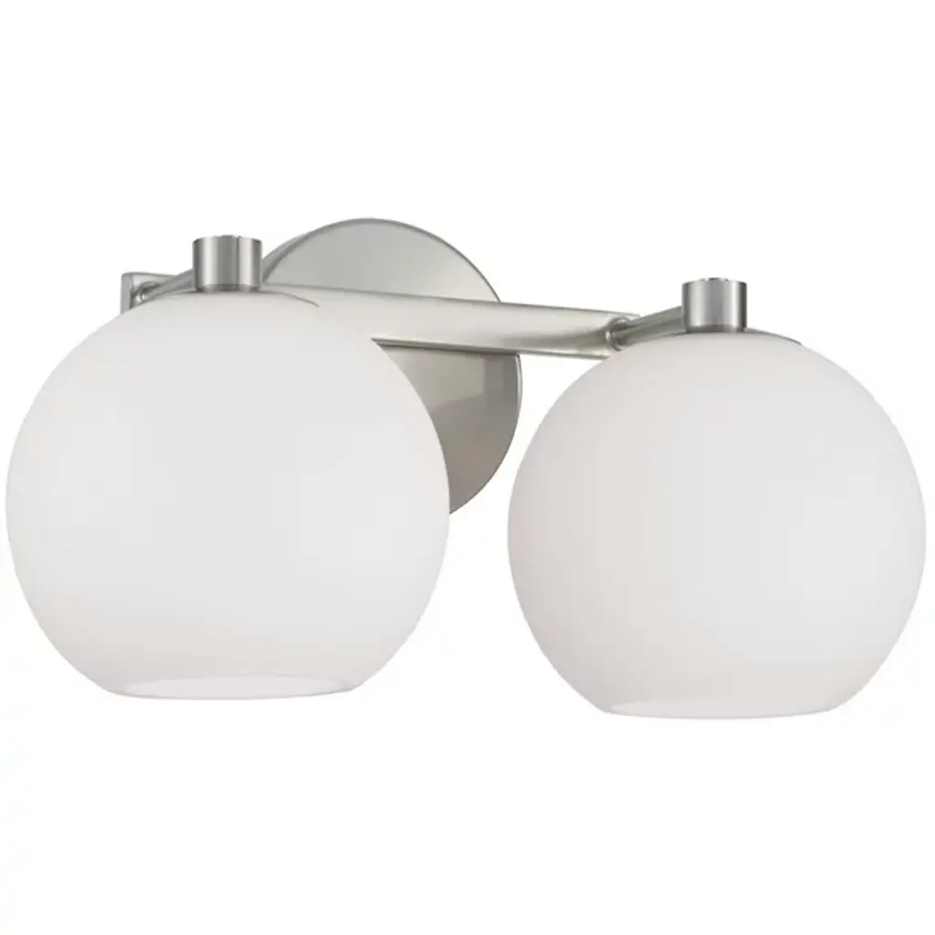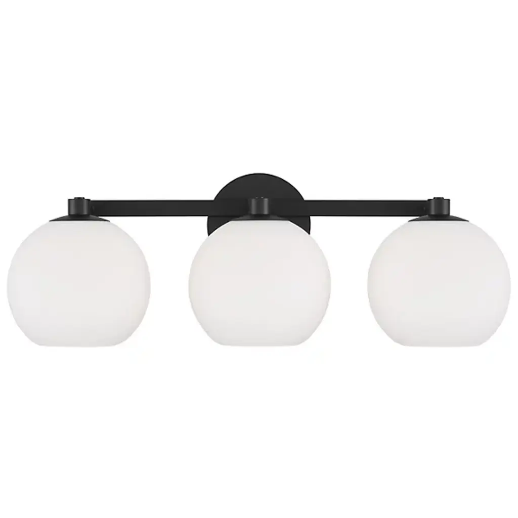 Elevate your bathroom with the Ansley Vanity Light from Capital Lighting, where circular forms harmonize with all-around versatility. The Soft White glass globe shades emanate a soft, sophisticated glow, infusing your space with timeless elegance. The finish provides a sleek contrast, enhancing the modern aesthetic of this vanity light. Illuminate your daily routine with this bathroom light, a perfect blend of refined design and functional lighting that adds a touch of contemporary style to your home.