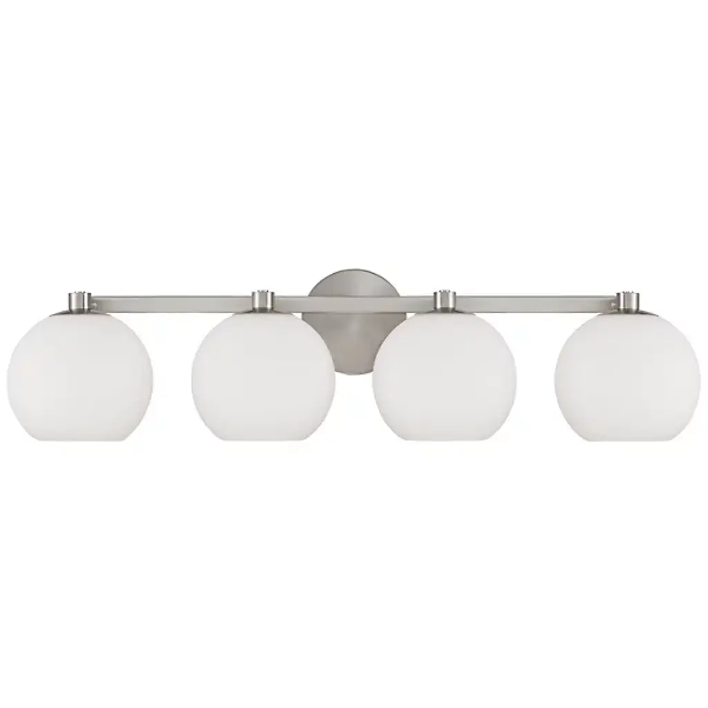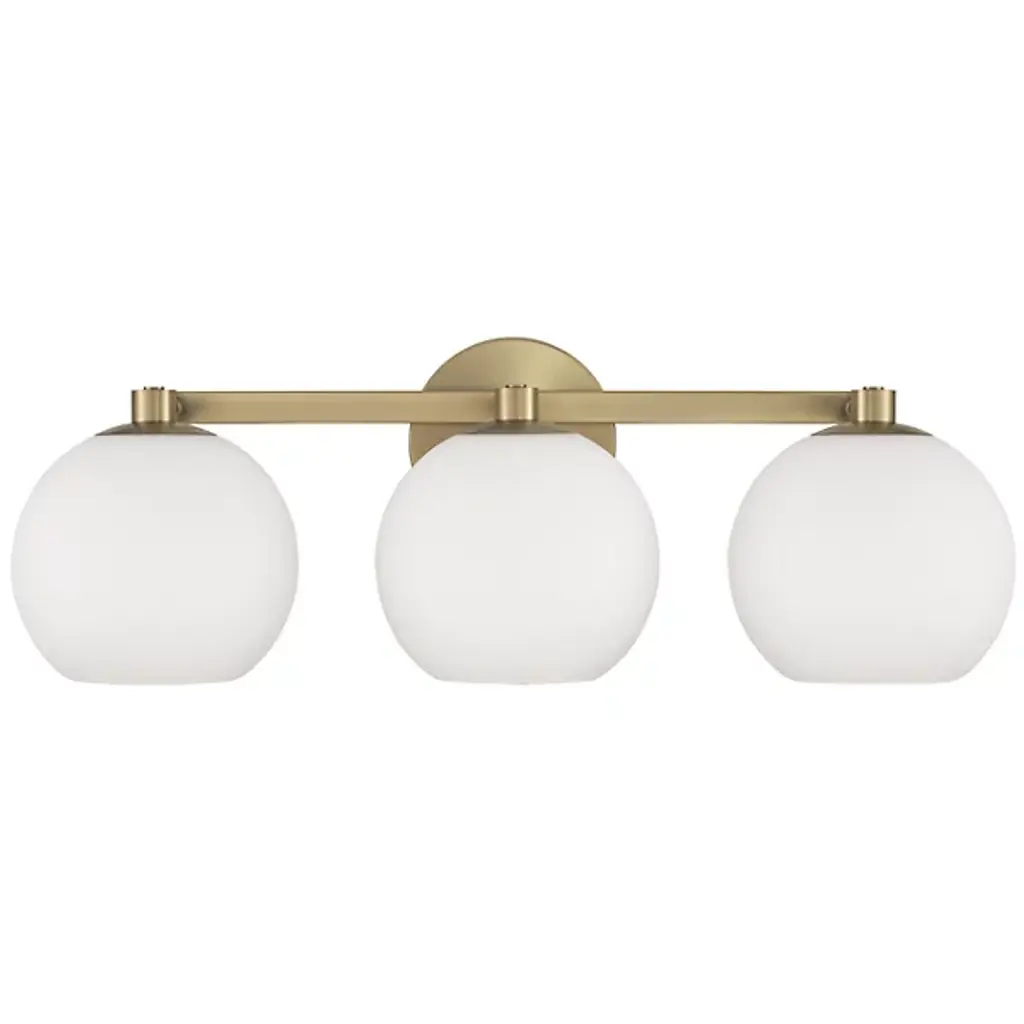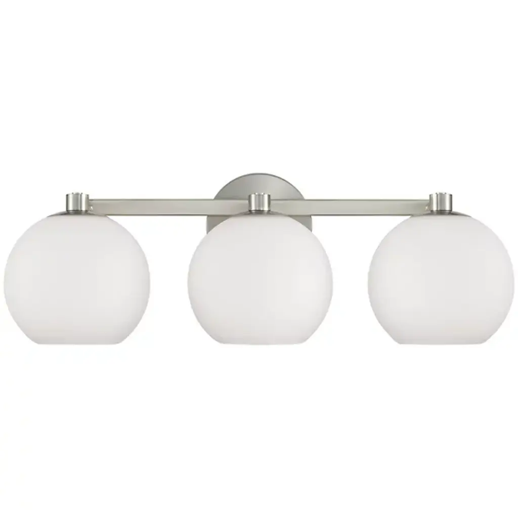 Elevate your bathroom with the Ansley Vanity Light from Capital Lighting, where circular forms harmonize with all-around versatility. The Soft White glass globe shades emanate a soft, sophisticated glow, infusing your space with timeless elegance. The finish provides a sleek contrast, enhancing the modern aesthetic of this vanity light. Illuminate your daily routine with this bathroom light, a perfect blend of refined design and functional lighting that adds a touch of contemporary style to your home.