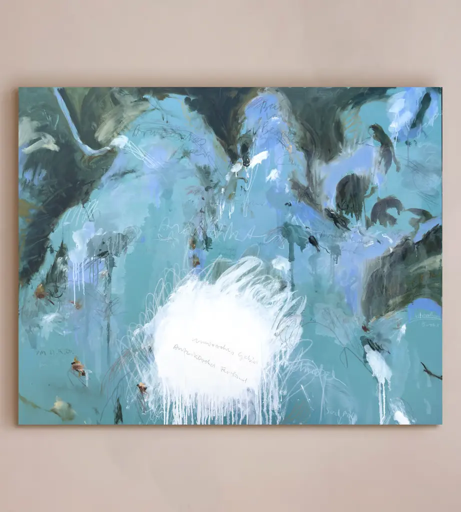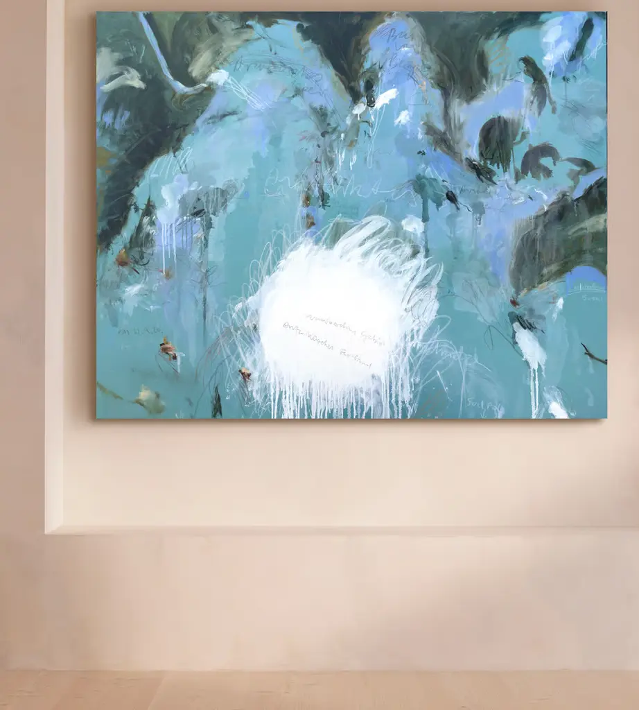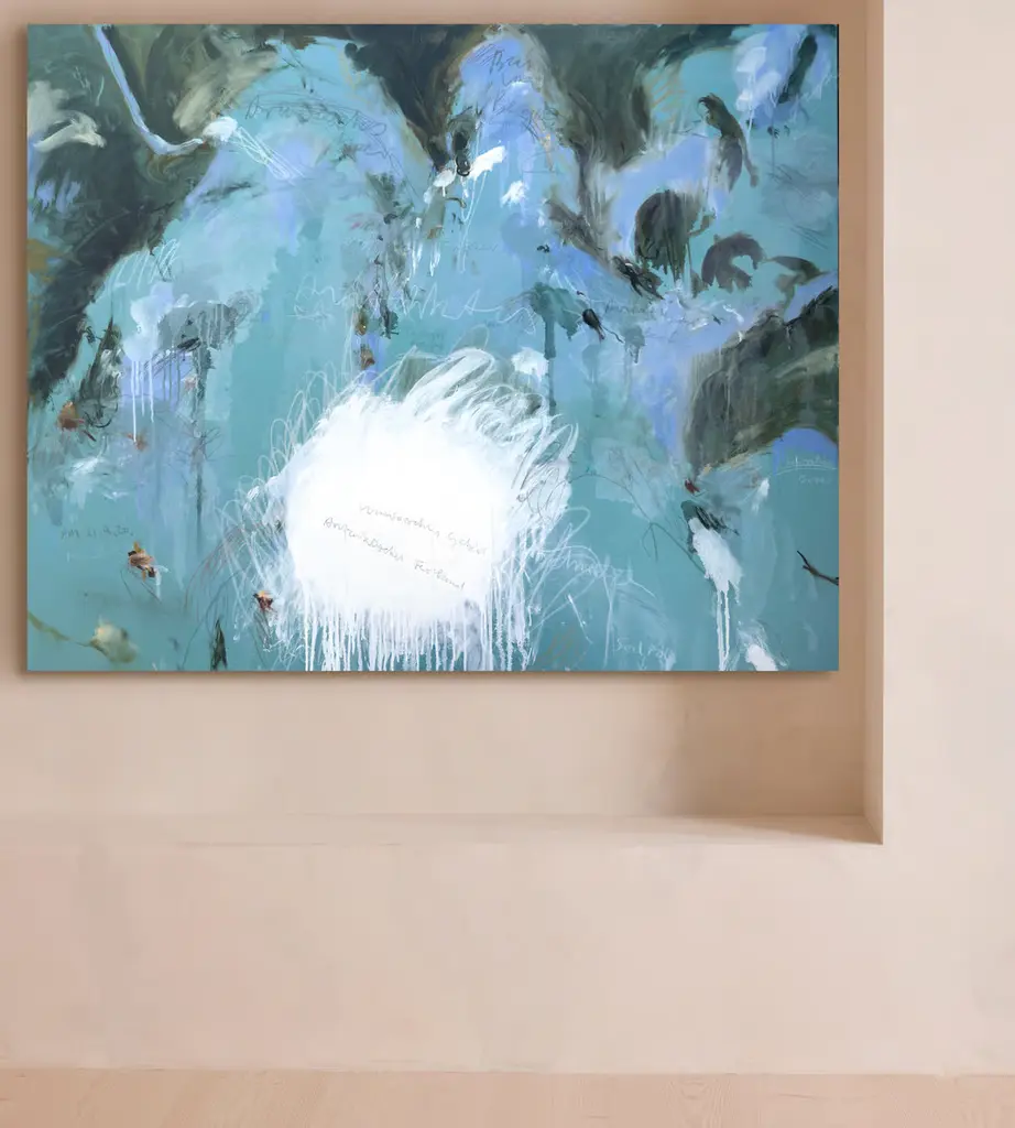 The artist applies oil paint, crayon, and graphite on canvas to create this original abstract piece inspired by maps, satellite images, and historical references. Philip Maltman is an abstract artist shortlisted for the John Moores Painting Prize. Born in Ayrshire, a historic county on the coast of Scotland, he is known for exploring the littoral zone through his work - the area of shoreline where the sea meets the land.