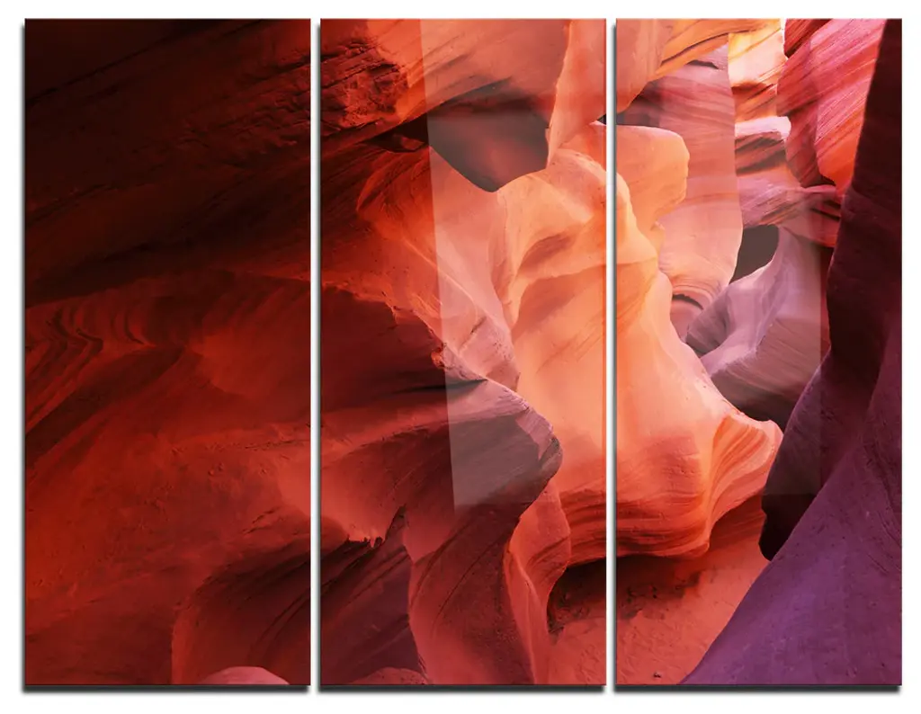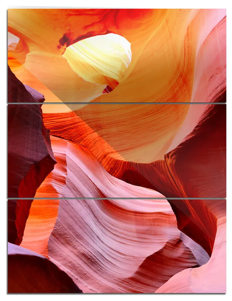 "Antelope Canyon Cave Inside" Photo Metal Wall Art, 3 Panels, 36"x28"