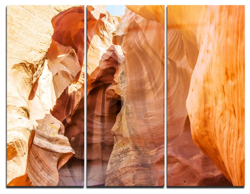 "Antelope Canyon In Sunshine" Photo Metal Wall Art, 3 Panels, 36"x28"