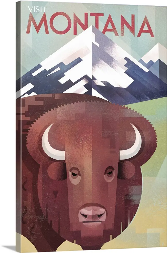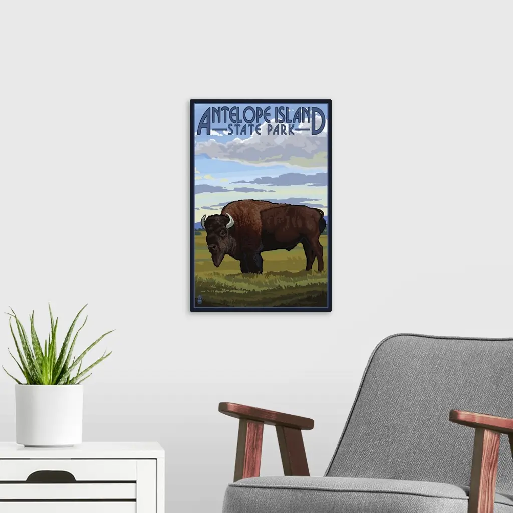 Antelope Island State Park, Utah - Bison and Field: Retro Travel Poster wall art for home and office decor. Discover canvas art prints, photos, mural, big canvas art and framed wall art in GreatBigCanvas.com's varied collections.
