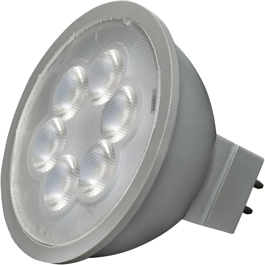 lluminate your space with this pack of six MR16 LED GU5.3 light bulbs that combine efficiency, durability, and style. Producing 500 lumens of bright, 3000K light at just 6 watts, these bulbs provide significant energy savings without compromising on brightness. With an 83 lumens-per-watt efficiency and low-voltage compatibility (12V), these bulbs are a smart choice for track lighting, recessed fixtures, and under-cabinet setups. The 60-degree beam angle is ideal for focused lighting, making these bulbs perfect for accentuating specific areas, artwork, or workspaces. Compactly designed at 2 inches wide and 2 inches high, they easily fit into smaller fixtures. A greater than 80 CRI ensures vivid and natural color rendering, while the dimmable functionality (up to 90%) allows you to create the perfect atmosphere for any setting. With the added convenience of a 6-pack, these bulbs make it easy and affordable to upgrade your indoor lighting with long-lasting and energy-efficient illumination.