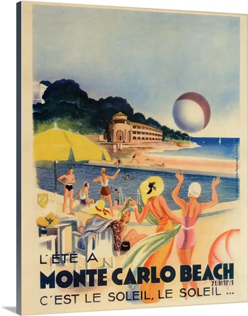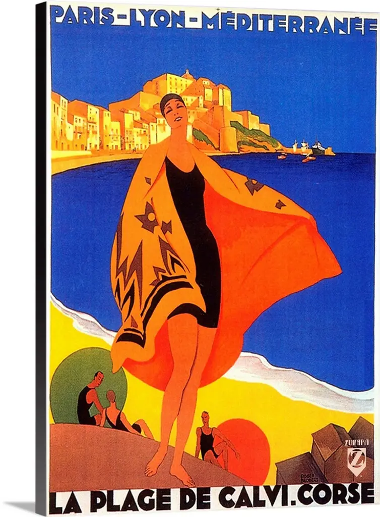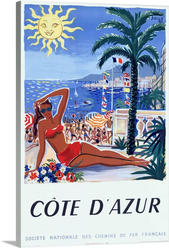 Antibes, Sa Plage De Juan Les Pins, Vintage Poster,by Roger Broders