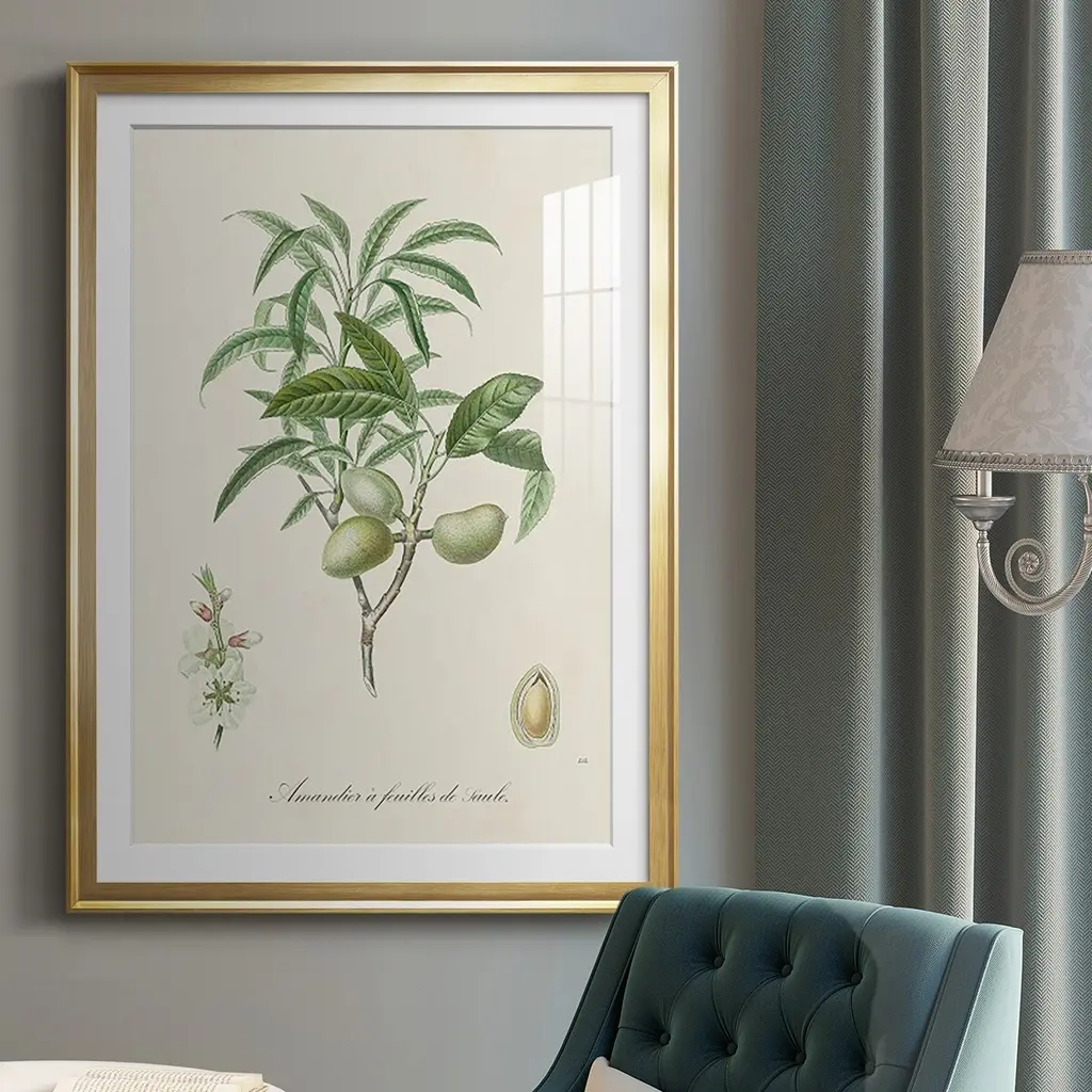 Antique Almond Botanical II Premium Framed Print - Ready to Hang A Premium Framed Print created to last. Framed in distressed wood and available in an array of sizes and colors Featuring a beveled a solid wood stretcher bar, each piece comes ready to hand 4 SIZES AVAILABLE 30.5''X42.5'' - Overall Size 26.5'X36.5'' - Overall Size 22.5''x30.5'' - Overall Size 18.5''x24.5'' - Overall Size Each piece is made to order. Each piece comes with hanging hardware. Made in the USA Ready to Hang Giclee Paper Print Acrylic Glass Beveled Matt Board