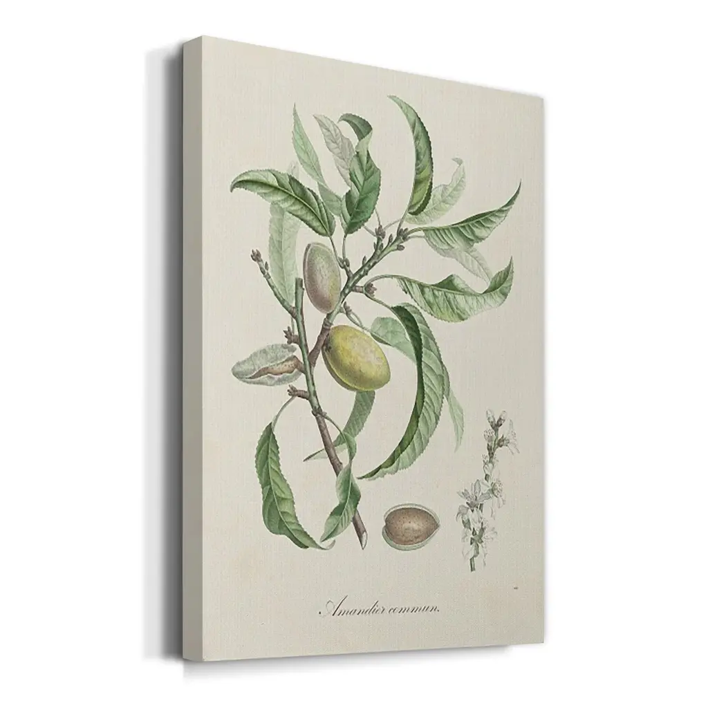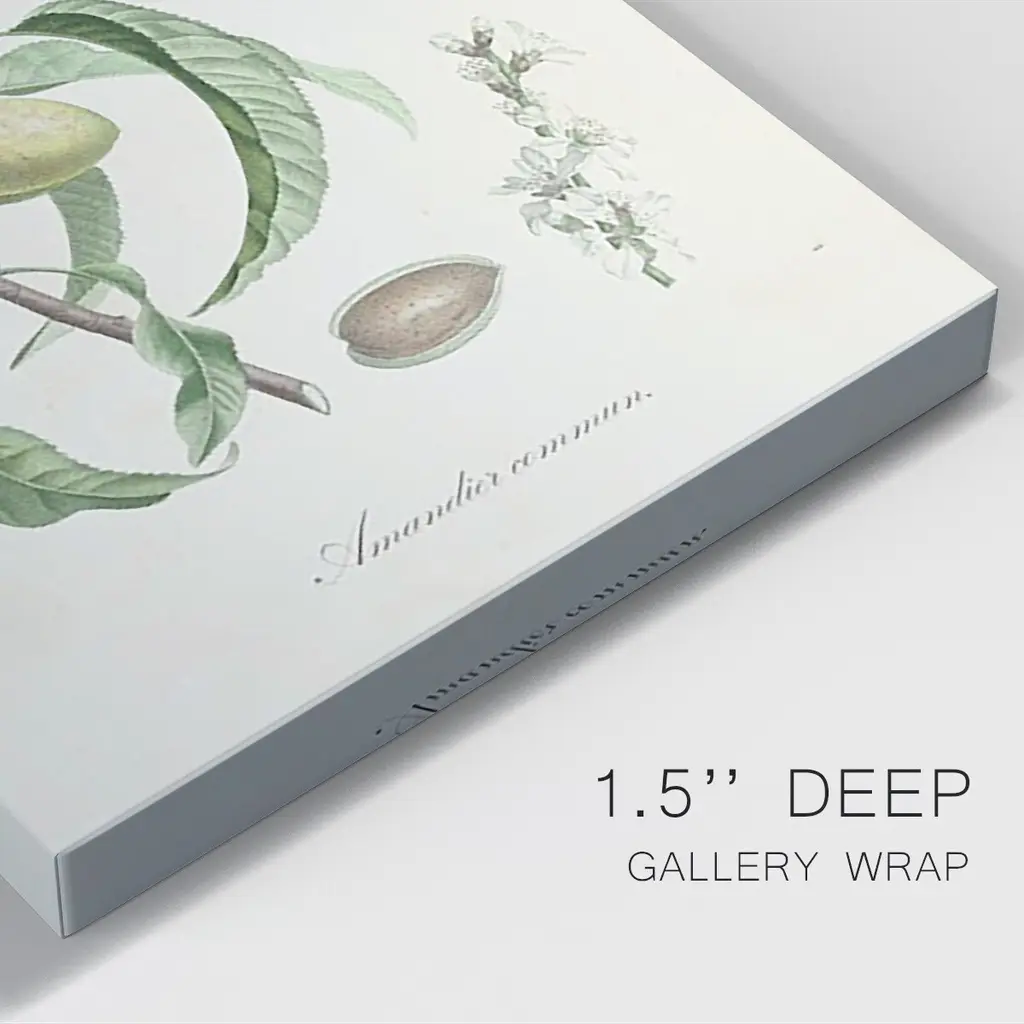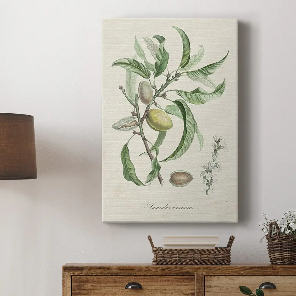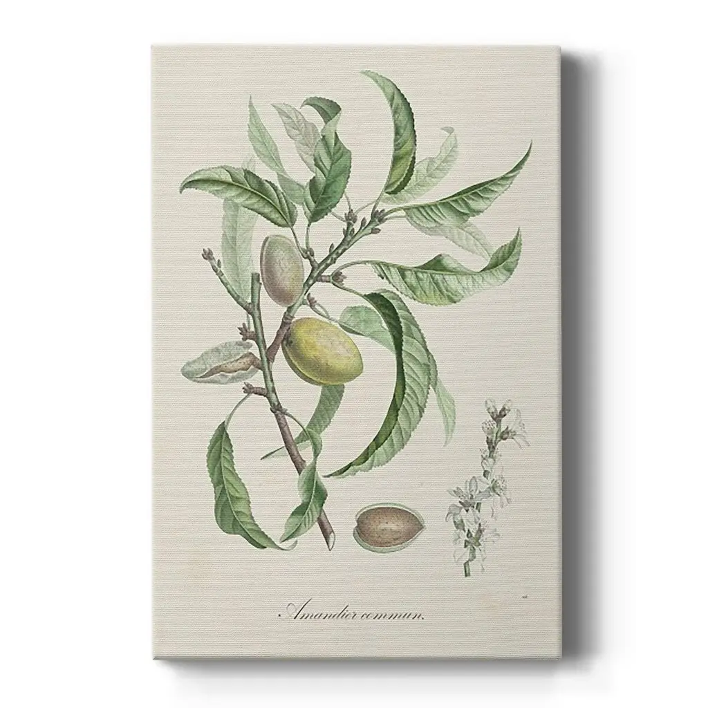 Antique Almond Botanical IV Premium Gallery Wrapped Canvas - Ready to Hang A premium hand stretched gallery wrapped canvas print created to last. Featuring a beveled a solid wood stretcher bar, each piece comes ready to hand 6 SIZES AVAILABLE 8''X12'' - Overall Size 12''X18'' - Overall Size 18''X27'' - Overall Size 24''x36'' - Overall Size 32''x48'' - Overall Size 40''x60'' - Overall Size Each piece is made to order. Built to Last Each piece comes ready to hang Solid wood stretcher Fade and Water resistant Made domestically