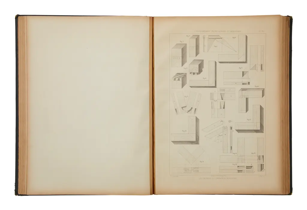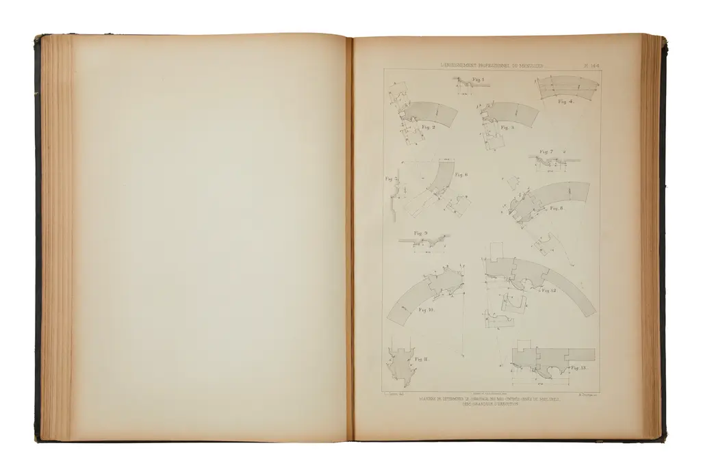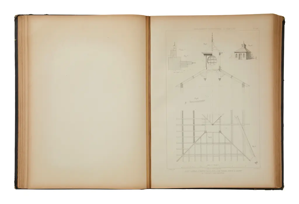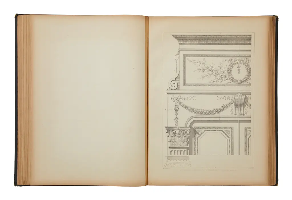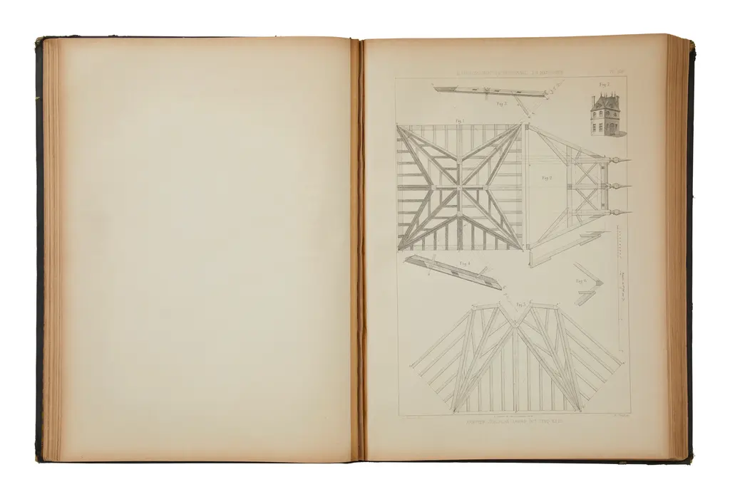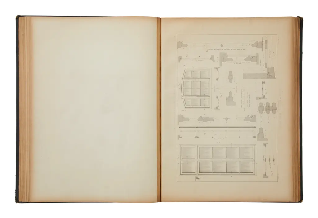 •leather bound architectural drawings.•early 20th century. •france.•2 volumes available Dimensions•21.5"w x 16"d x 1.25"h •up to 2 available (pending availability)