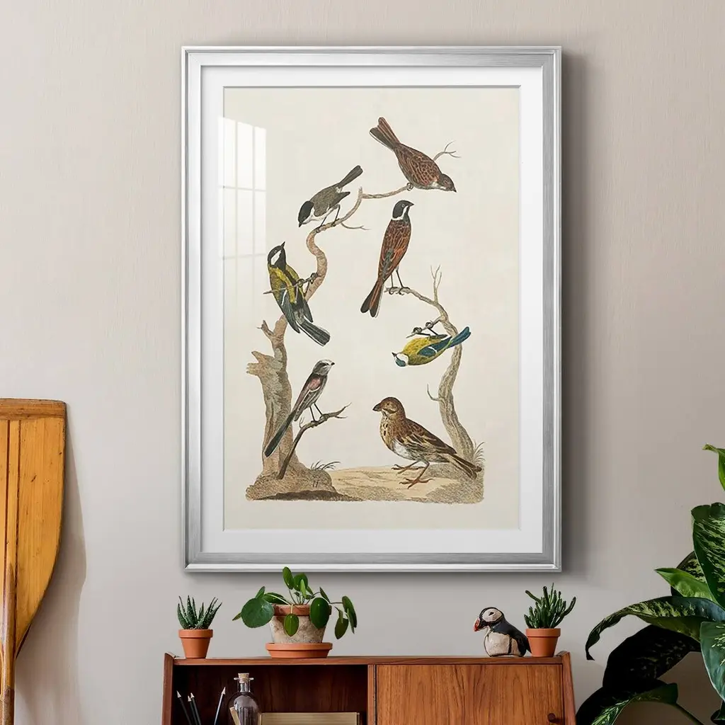 Antique Birds in Nature II Premium Framed Print - Ready to Hang A Premium Framed Print created to last. Framed in distressed wood and available in an array of sizes and colors Featuring a beveled a solid wood stretcher bar, each piece comes ready to hand 4 SIZES AVAILABLE 30.5''X42.5'' - Overall Size 26.5'X36.5'' - Overall Size 22.5''x30.5'' - Overall Size 18.5''x24.5'' - Overall Size Each piece is made to order. Each piece comes with hanging hardware. Made in the USA Ready to Hang Giclee Paper Print Acrylic Glass Beveled Matt Board