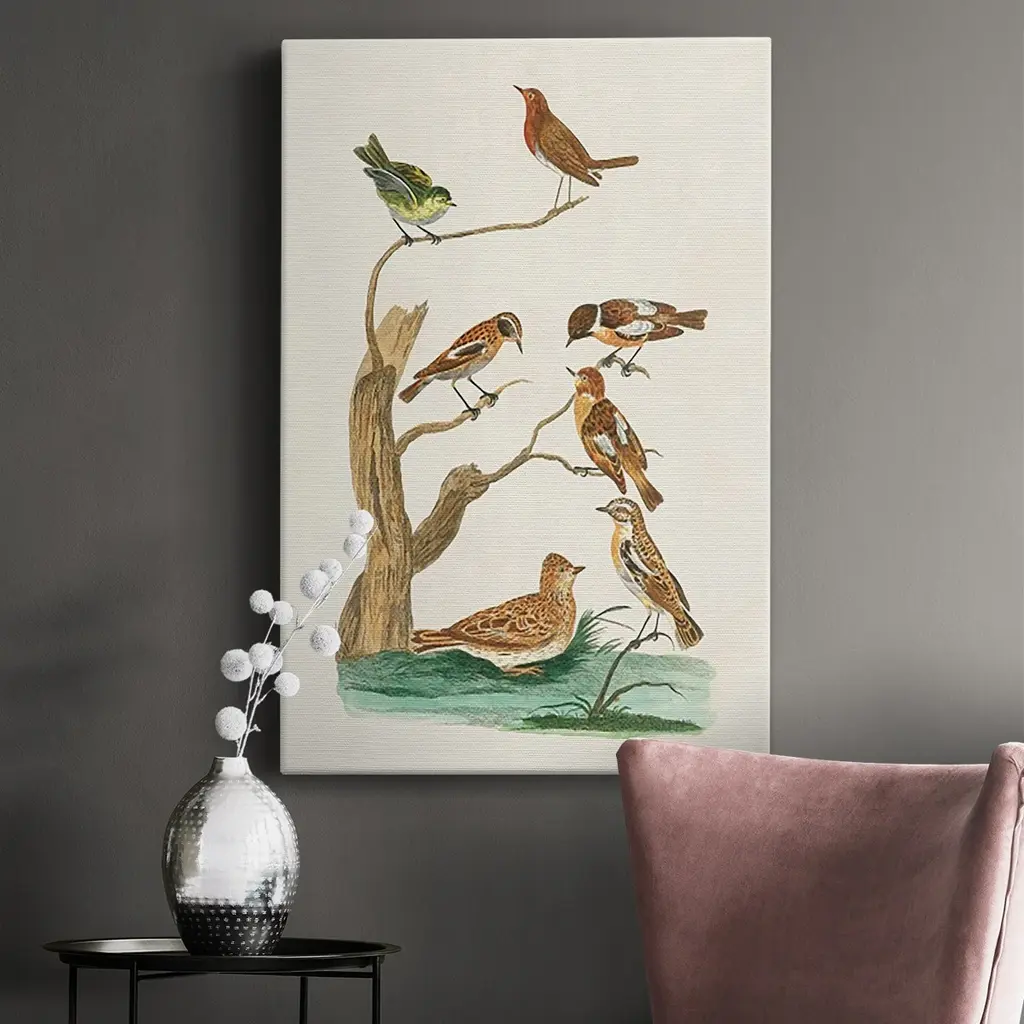 Antique Birds in Nature III Premium Gallery Wrapped Canvas - Ready to Hang A premium hand stretched gallery wrapped canvas print created to last. Featuring a beveled a solid wood stretcher bar, each piece comes ready to hand 6 SIZES AVAILABLE 8''X12'' - Overall Size 12''X18'' - Overall Size 18''X27'' - Overall Size 24''x36'' - Overall Size 32''x48'' - Overall Size 40''x60'' - Overall Size Each piece is made to order. Built to Last Each piece comes ready to hang Solid wood stretcher Fade and Water resistant Made domestically
