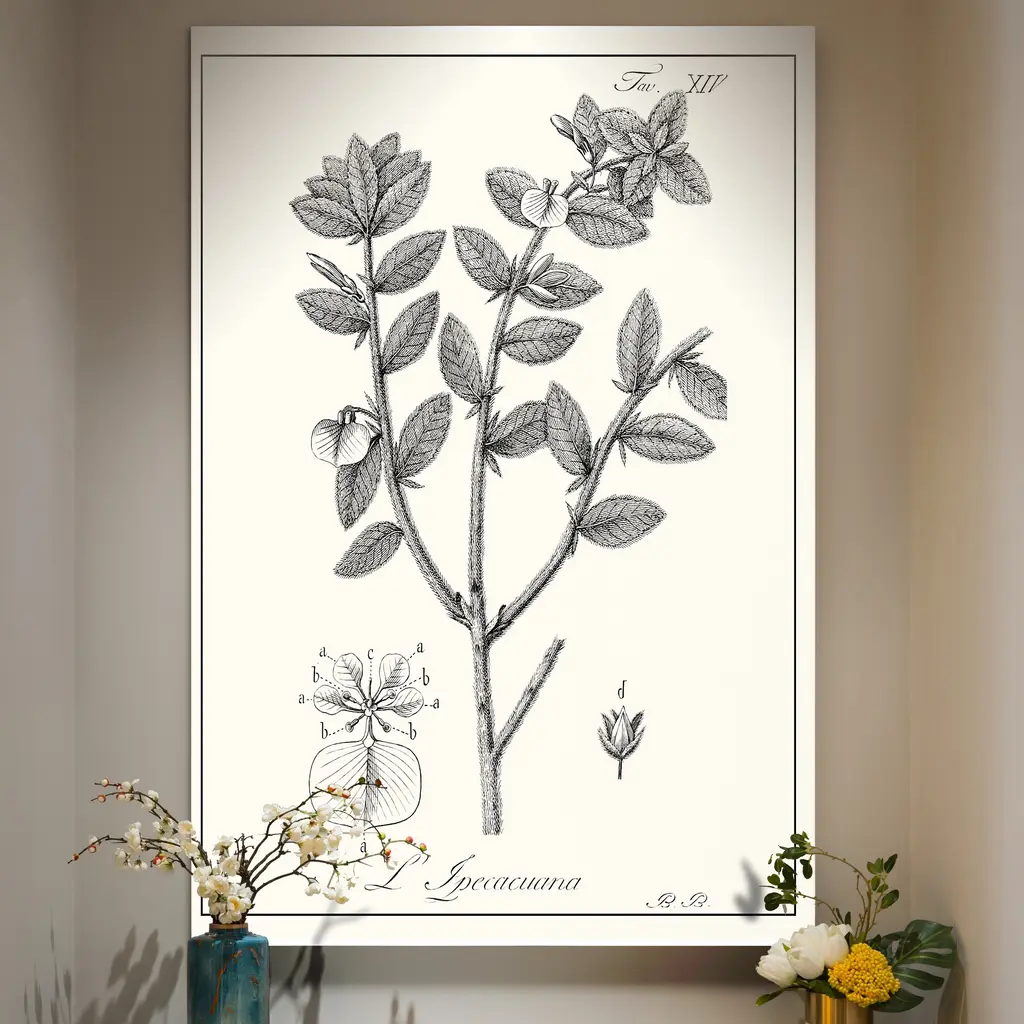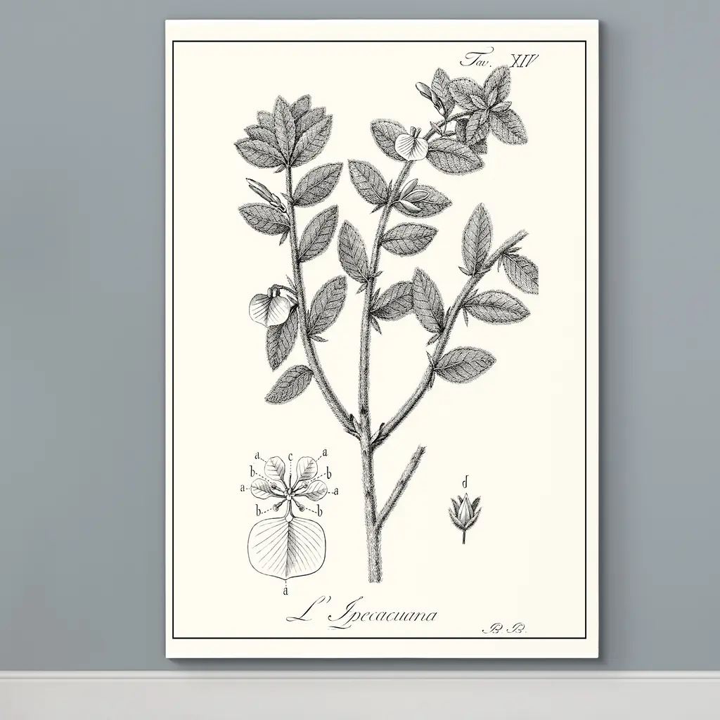Antique Black & White Botanical-Premium Gallery Wrapped Canvas - Ready to Hang A premium hand stretched gallery wrapped canvas print created to last. Featuring a beveled a solid wood stretcher bar, each piece comes ready to hand 5 SIZES AVAILABLE 8''X12'' - Overall Size 16''x20'' - Overall Size 18''x27'' - Overall Size 24''x36'' - Overall Size 32''x48'' - Overall Size Each piece is made to order. Built to Last Each piece comes ready to hang Solid wood stretcher Fade and Water resistant Made domestically