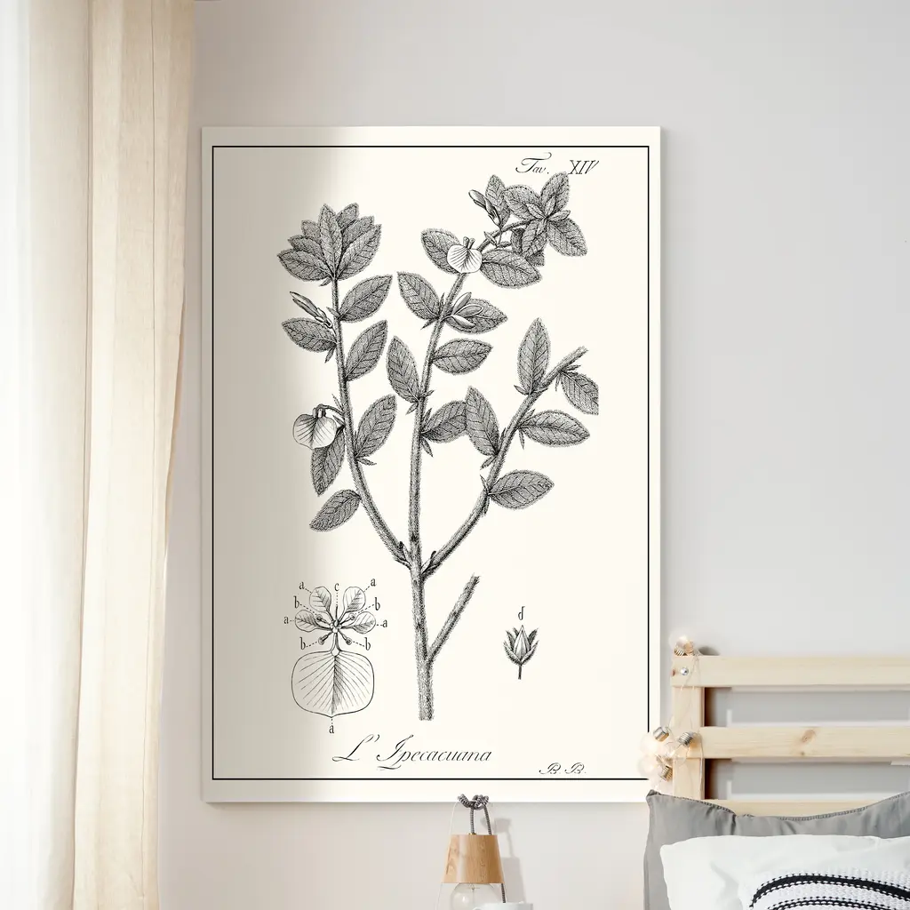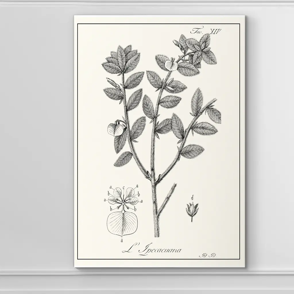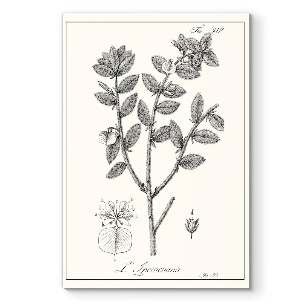 Antique Black & White Botanical-Premium Gallery Wrapped Canvas - Ready to Hang A premium hand stretched gallery wrapped canvas print created to last. Featuring a beveled a solid wood stretcher bar, each piece comes ready to hand 5 SIZES AVAILABLE 8''X12'' - Overall Size 16''x20'' - Overall Size 18''x27'' - Overall Size 24''x36'' - Overall Size 32''x48'' - Overall Size Each piece is made to order. Built to Last Each piece comes ready to hang Solid wood stretcher Fade and Water resistant Made domestically