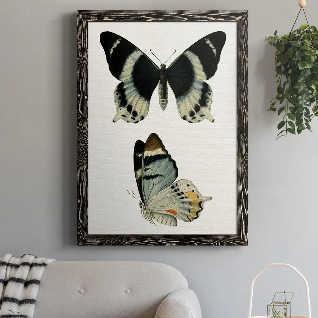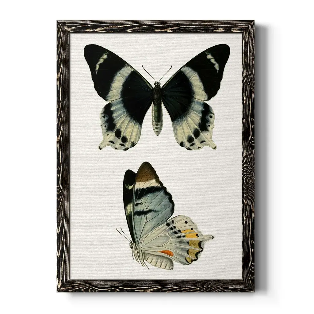 Antique Blue Butterflies I-Premium Framed Canvas - Ready To Hang - 27.5x37.5 - Black