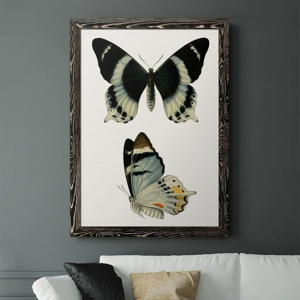Antique Blue Butterflies I-Premium Framed Canvas - Ready To Hang - 27.5x37.5 - Maple