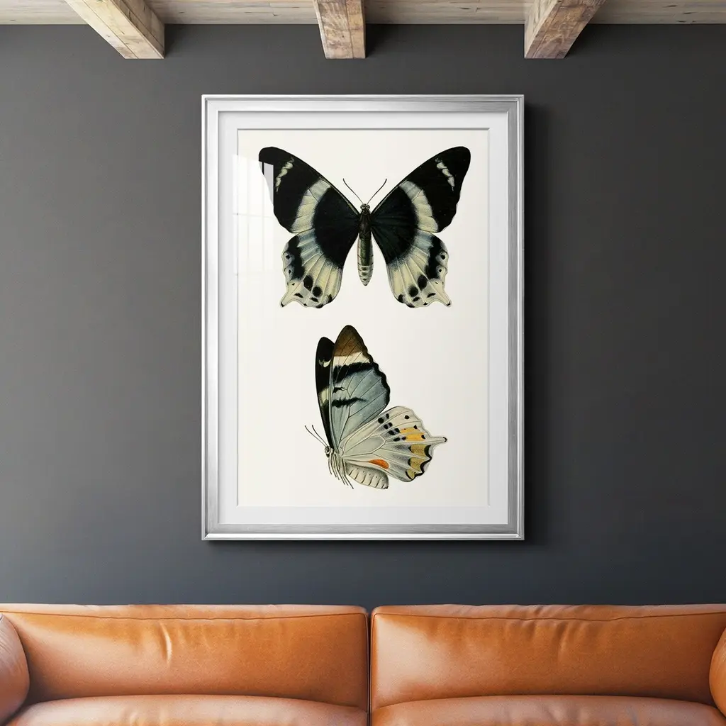 Antique Blue Butterflies I Premium Framed Print - Ready To Hang - 26.5x36.5 - Black
