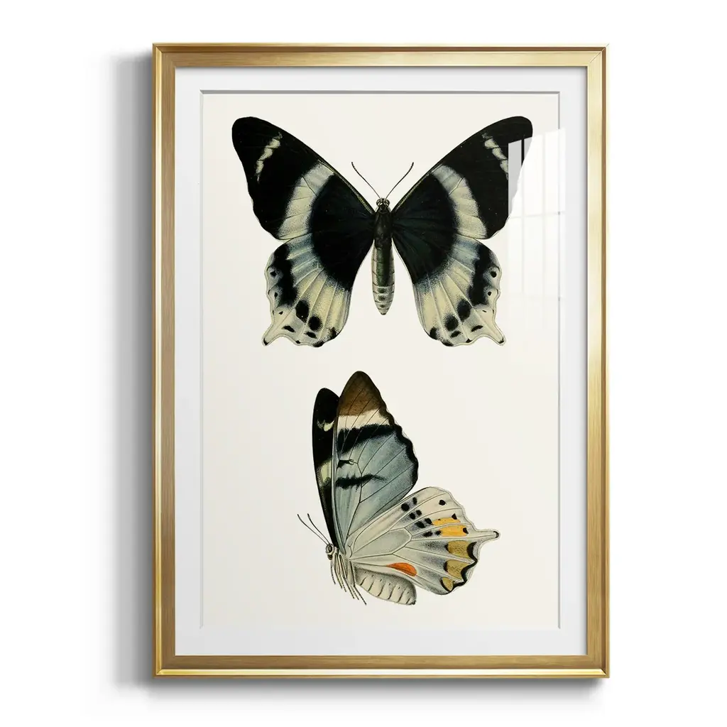 Antique Blue Butterflies I Premium Framed Print - Ready to Hang A Premium Framed Print created to last. Framed in distressed wood and available in an array of sizes and colors Featuring a beveled a solid wood stretcher bar, each piece comes ready to hand 4 SIZES AVAILABLE 30.5''X42.5'' - Overall Size 26.5'X36.5'' - Overall Size 22.5''x30.5'' - Overall Size 18.5''x24.5'' - Overall Size Each piece is made to order. Each piece comes with hanging hardware. Made in the USA Ready to Hang Giclee Paper Print Acrylic Glass Beveled Matt Board