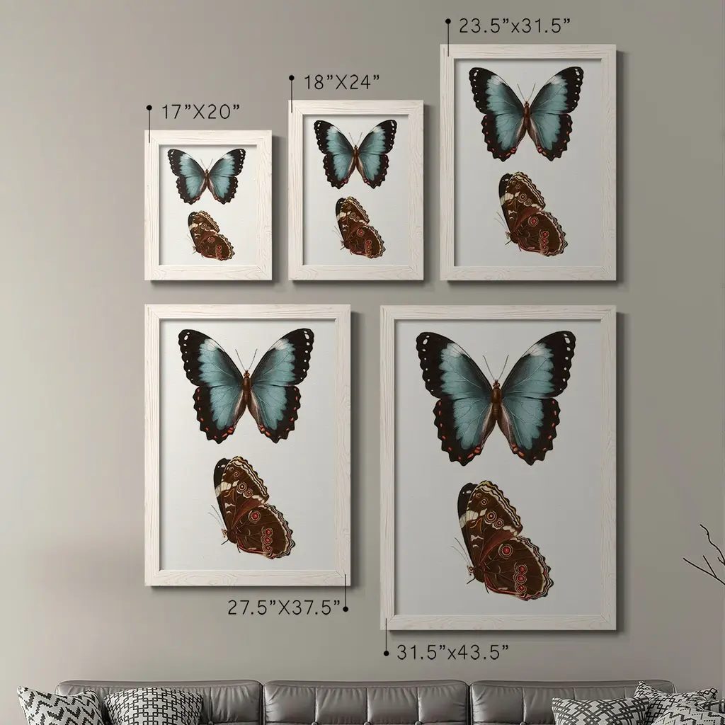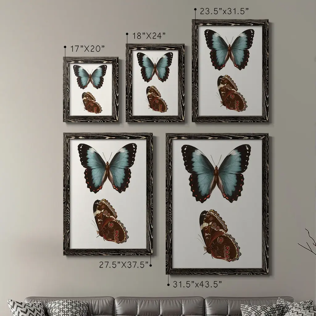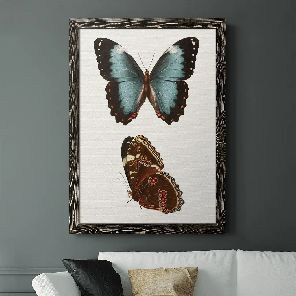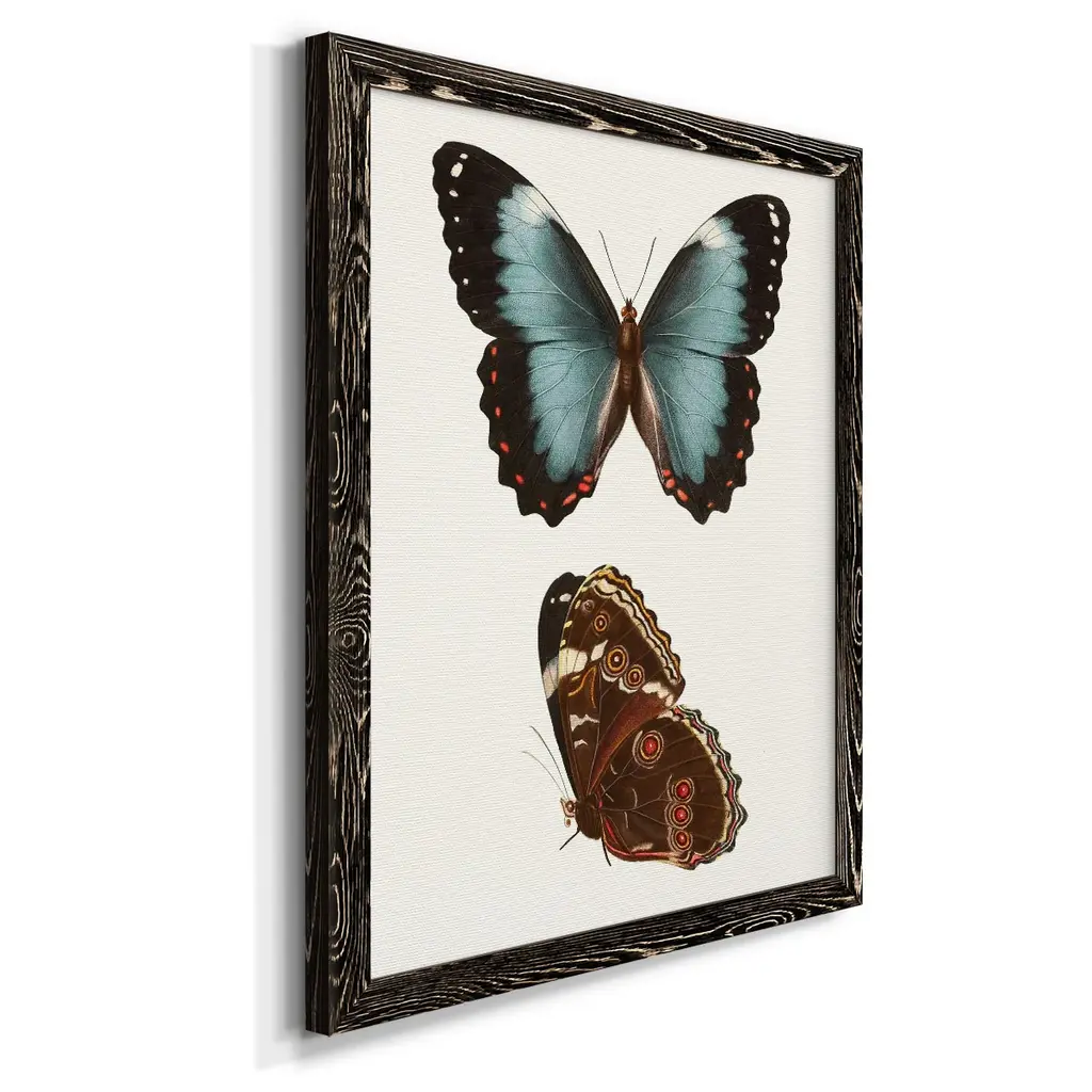 Antique Blue Butterflies Iv-Premium Framed Canvas - Ready To Hang - 27.5x37.5 - Maple