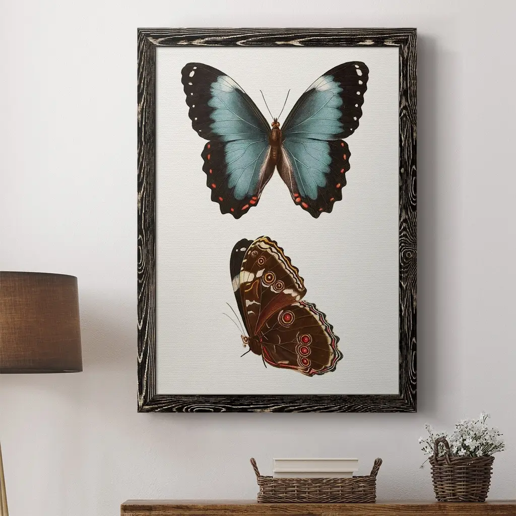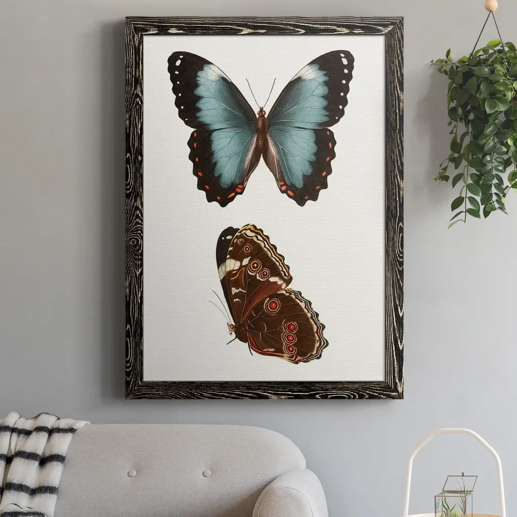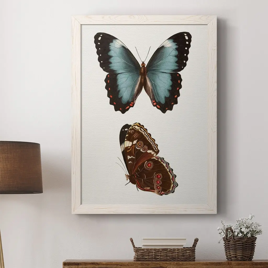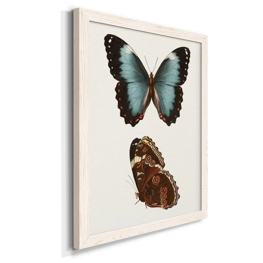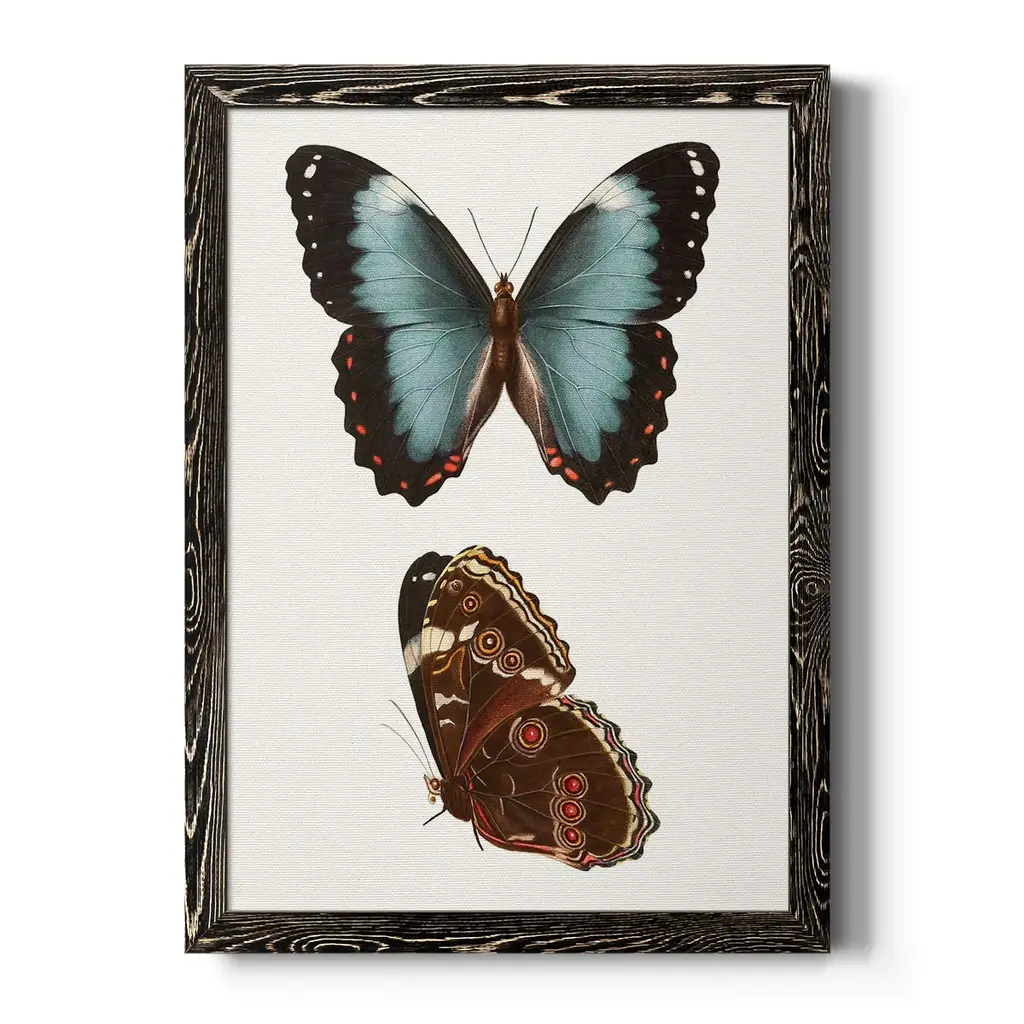 Antique Blue Butterflies Iv-Premium Framed Canvas - Ready To Hang - 27.5x37.5 - Maple