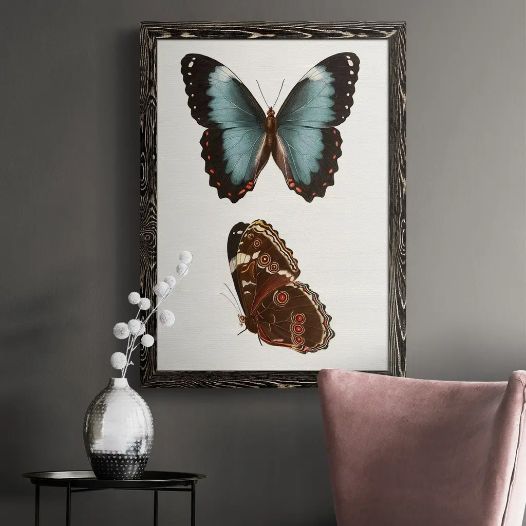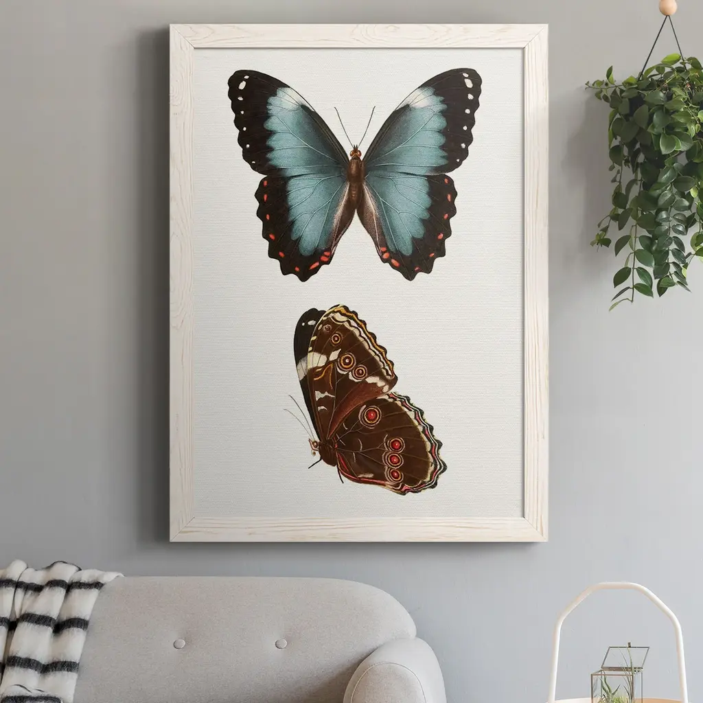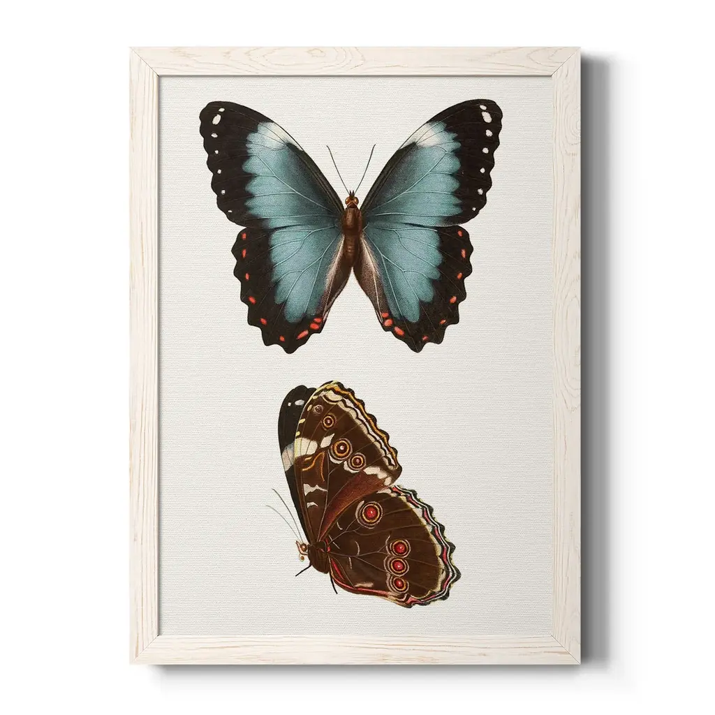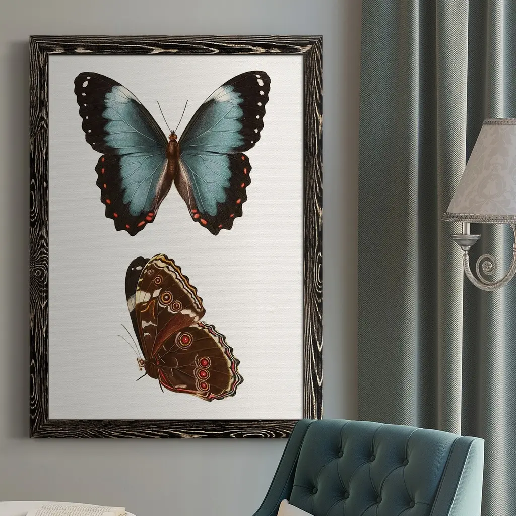 Antique Blue Butterflies Iv-Premium Framed Canvas - Ready To Hang - 27.5x37.5 - Maple