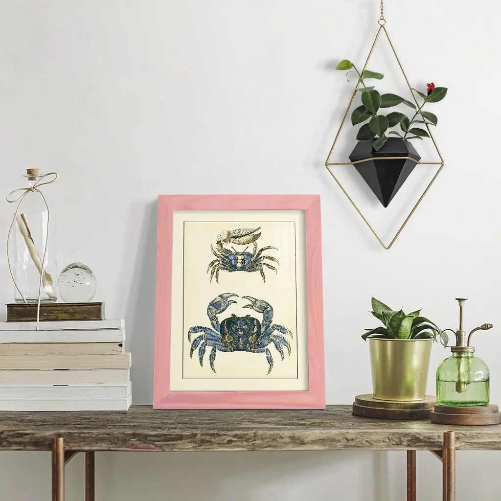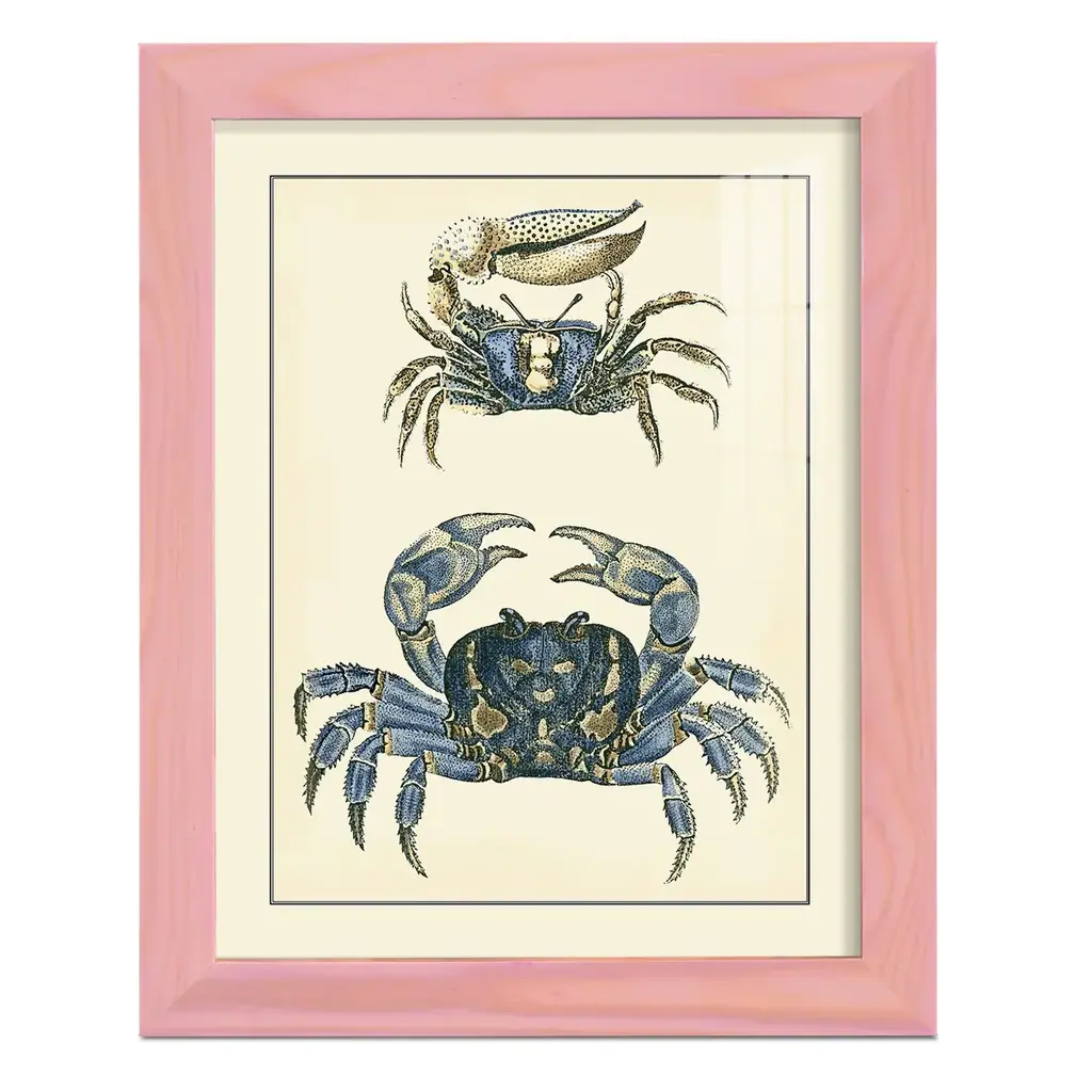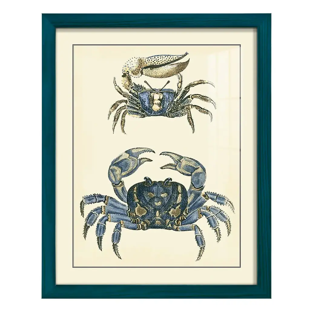 Antique Blue Crabs Ii -Framed Print W/glass-Cherry Red - 12x15 - Yellow
