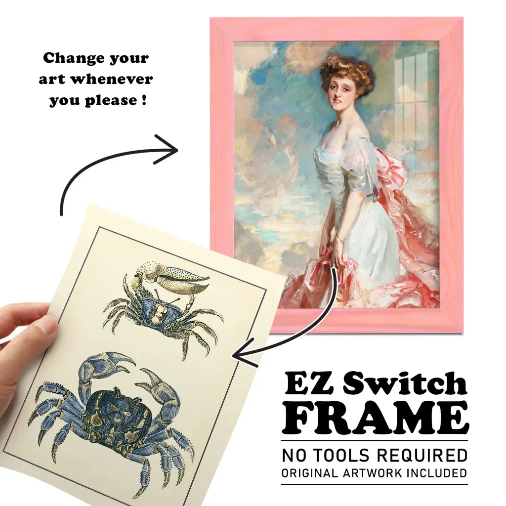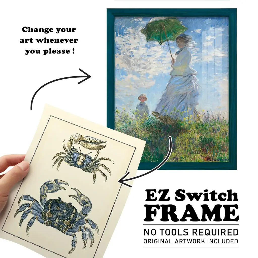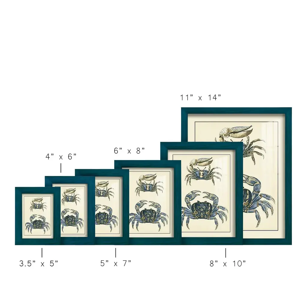 Antique Blue Crabs II -EZ SWITCH Framed Print w/glass-Cherry Red A delightful, framed print. Featuring a solid wood frame with real wood glass. This premium print is giclee quality. In addition, every frame features a removable back and table top stand. This allows you to change your art in the future or to just stand the art on a table for a new look. We are sure you'll enjoy our new series of EZ SWITCH Framed Art. Solid Wood Frame Real Glass Removable / Replaceable Art Built in Tabletop Stand Sizes range from 4x6 up to 12x15 - buy just one or pair them up as sets as you see fit.