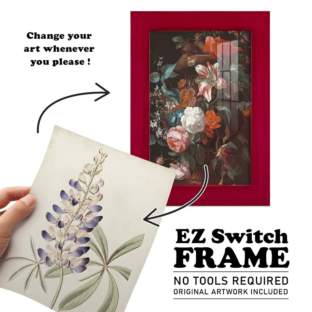 Antique Botanical Collection II -EZ SWITCH Framed Print w/glass-Cherry Red A delightful, framed print. Featuring a solid wood frame with real wood glass. This premium print is giclee quality. In addition, every frame features a removable back and table top stand. This allows you to change your art in the future or to just stand the art on a table for a new look. We are sure you'll enjoy our new series of EZ SWITCH Framed Art. Solid Wood Frame Real Glass Removable / Replaceable Art Built in Tabletop Stand Sizes range from 4x6 up to 12x15 - buy just one or pair them up as sets as you see fit.