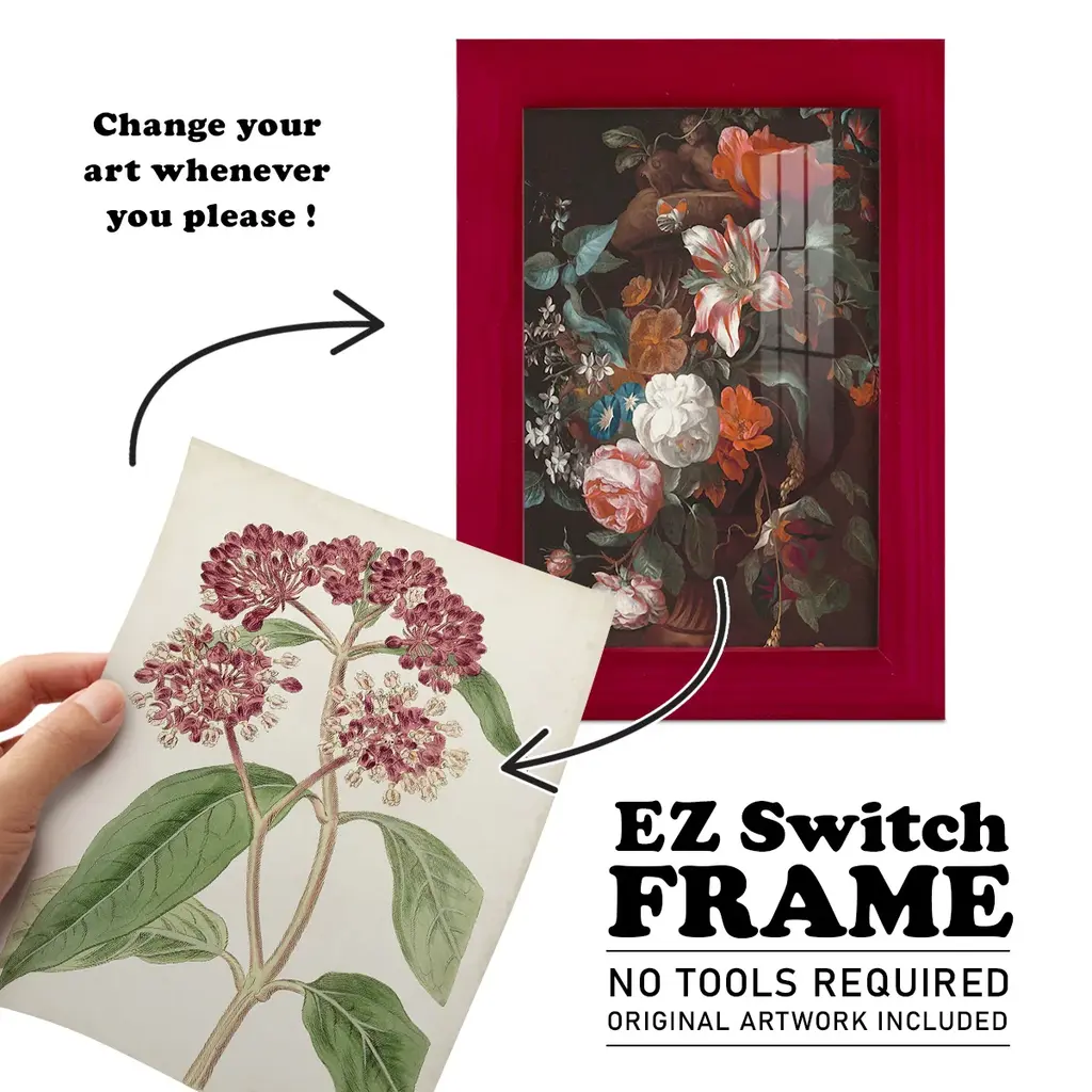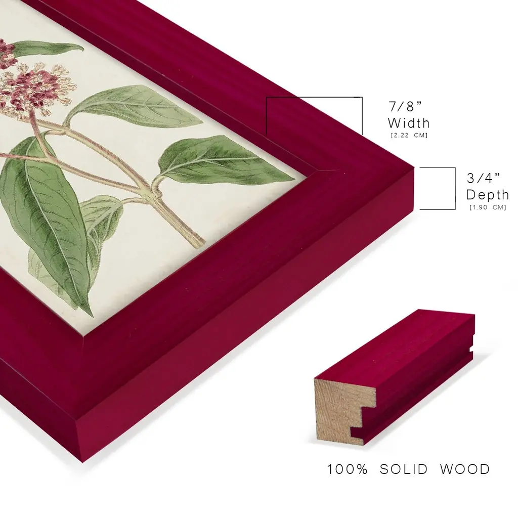 Antique Botanical Collection XI -EZ SWITCH Framed Print w/glass-Cherry Red A delightful, framed print. Featuring a solid wood frame with real wood glass. This premium print is giclee quality. In addition, every frame features a removable back and table top stand. This allows you to change your art in the future or to just stand the art on a table for a new look. We are sure you'll enjoy our new series of EZ SWITCH Framed Art. Solid Wood Frame Real Glass Removable / Replaceable Art Built in Tabletop Stand Sizes range from 4x6 up to 12x15 - buy just one or pair them up as sets as you see fit.