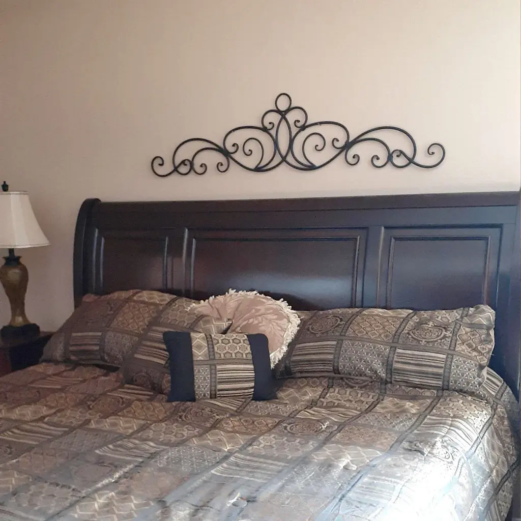 Impressive Dimensions - This metal wall decor measures 53.5 inches long, 12 inches high, and 0.75 inches wide, making it a substantial and eye-catching addition to your space.Robust Craftsmanship - Crafted from durable metal, this piece is both sturdy and lightweight, ensuring a lasting and resilient decorative element for your home.Unique Antique Charm - The decor features a striking black metal design adorned with an antiqued bronze accent, adding a touch of vintage allure to your interior or exterior setting.Effortless Installation - Designed for convenience, this lightweight metal decor offers multiple support points for easy hanging, vertically or horizontally, allowing you to personalize your decor arrangement. (Hardware not included.)Stylish Focal Point - Whether adorning a window or doorway, this piece serves as an eye-catching accent, instantly enhancing the visual appeal of your space with its flair and charm.Add some flair to your home with this lovely metal scroll wall hanging. Crafted from black metal tubing and given an antiqued bronze accent finish, this unique piece of wall decor is great for hanging above a window, door, or arch, or just as an eye-catching art piece. Measuring 53.5 inches long, 12 inches high, and 0.75 inches wide, this scroll is quick and easy to hang horizontally or vertically with a single screw or multiple for added stability (hardware not included). This decorative accent is perfect for any room with a traditional or eclectic style. This product is an exclusive Zeckos design.