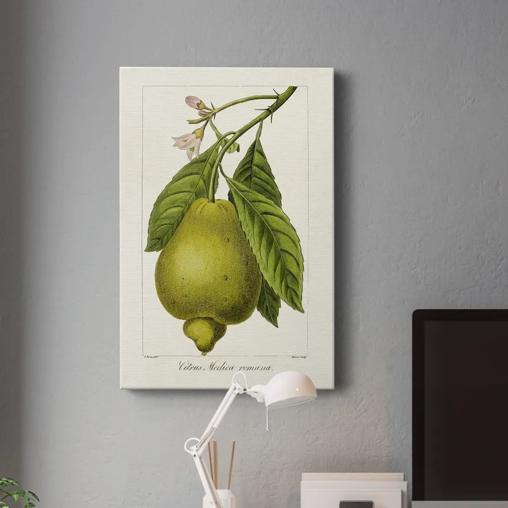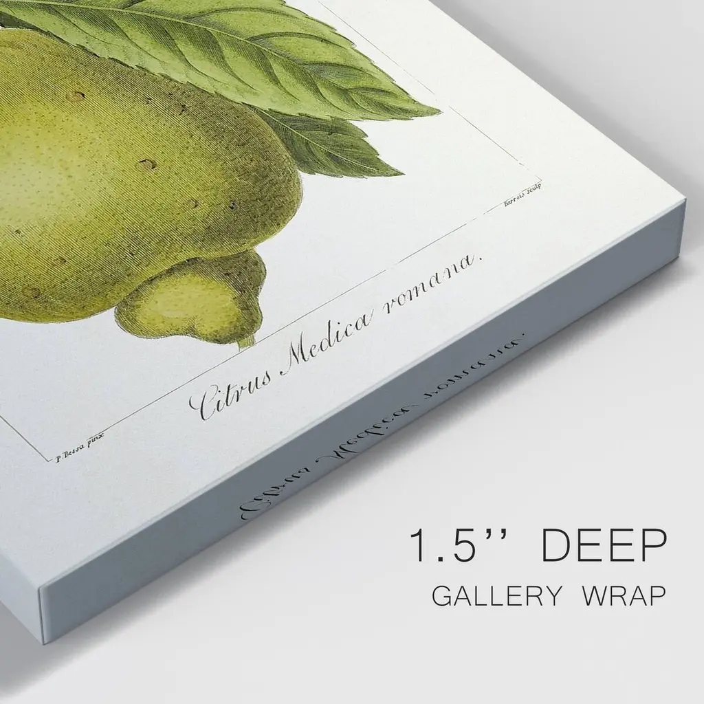 Antique Citrus Fruit III Premium Gallery Wrapped Canvas - Ready to Hang A premium hand stretched gallery wrapped canvas print created to last. Featuring a beveled a solid wood stretcher bar, each piece comes ready to hand 5 SIZES AVAILABLE 8''X12'' - Overall Size 16'X20'' - Overall Size 24''x32'' - Overall Size 30''x40'' - Overall Size 36''x48'' - Overall Size Each piece is made to order. Built to Last Each piece comes ready to hang Solid wood stretcher Fade and Water resistant Made domestically