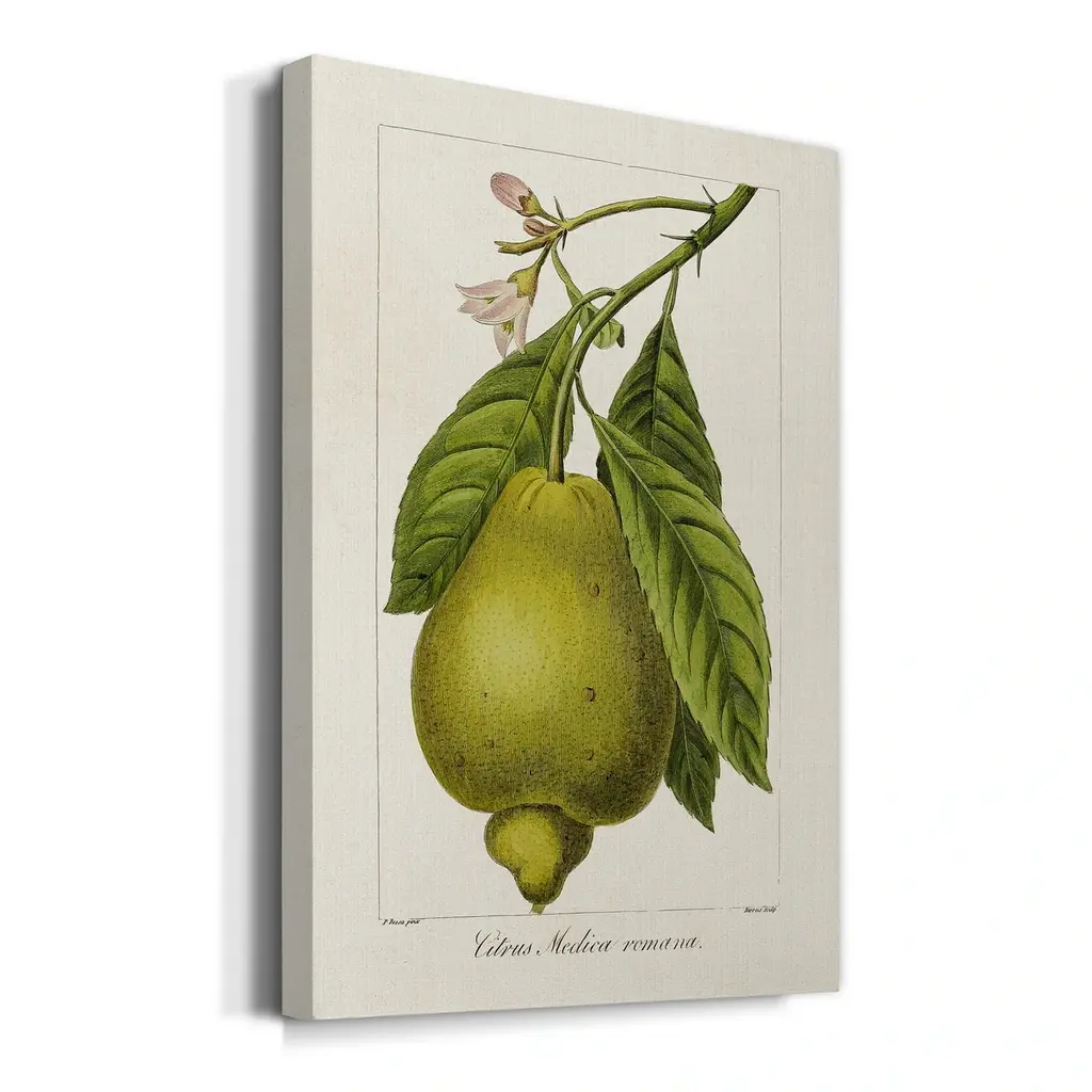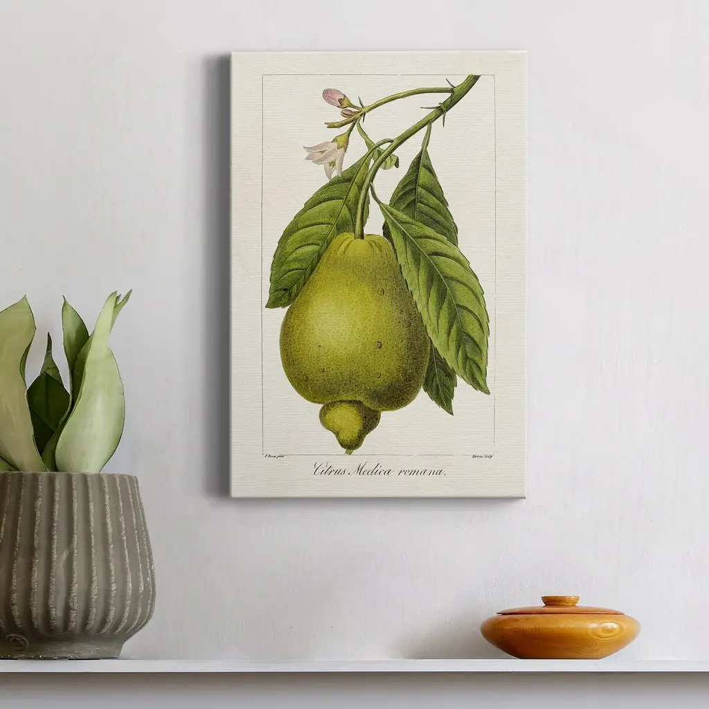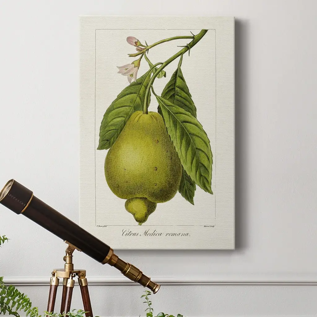 Antique Citrus Fruit III Premium Gallery Wrapped Canvas - Ready to Hang A premium hand stretched gallery wrapped canvas print created to last. Featuring a beveled a solid wood stretcher bar, each piece comes ready to hand 5 SIZES AVAILABLE 8''X12'' - Overall Size 16'X20'' - Overall Size 24''x32'' - Overall Size 30''x40'' - Overall Size 36''x48'' - Overall Size Each piece is made to order. Built to Last Each piece comes ready to hang Solid wood stretcher Fade and Water resistant Made domestically