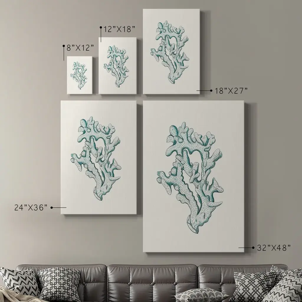 Antique Coastal Coral IV Premium Gallery Wrapped Canvas - Ready to Hang A premium hand stretched gallery wrapped canvas print created to last. Featuring a beveled a solid wood stretcher bar, each piece comes ready to hand 6 SIZES AVAILABLE 8''X12'' - Overall Size 12''X18'' - Overall Size 18''X27'' - Overall Size 24''x36'' - Overall Size 32''x48'' - Overall Size 40''x60'' - Overall Size Each piece is made to order. Built to Last Each piece comes ready to hang Solid wood stretcher Fade and Water resistant Made domestically