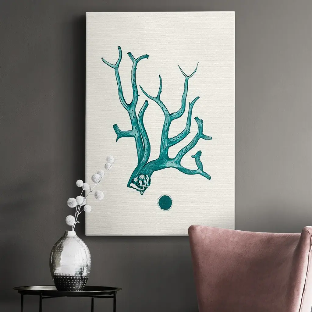 Antique Coastal Coral IX Premium Gallery Wrapped Canvas - Ready to Hang A premium hand stretched gallery wrapped canvas print created to last. Featuring a beveled a solid wood stretcher bar, each piece comes ready to hand 6 SIZES AVAILABLE 8''X12'' - Overall Size 12''X18'' - Overall Size 18''X27'' - Overall Size 24''x36'' - Overall Size 32''x48'' - Overall Size 40''x60'' - Overall Size Each piece is made to order. Built to Last Each piece comes ready to hang Solid wood stretcher Fade and Water resistant Made domestically