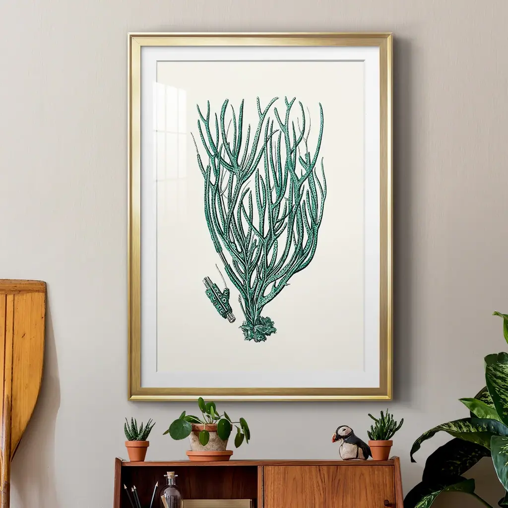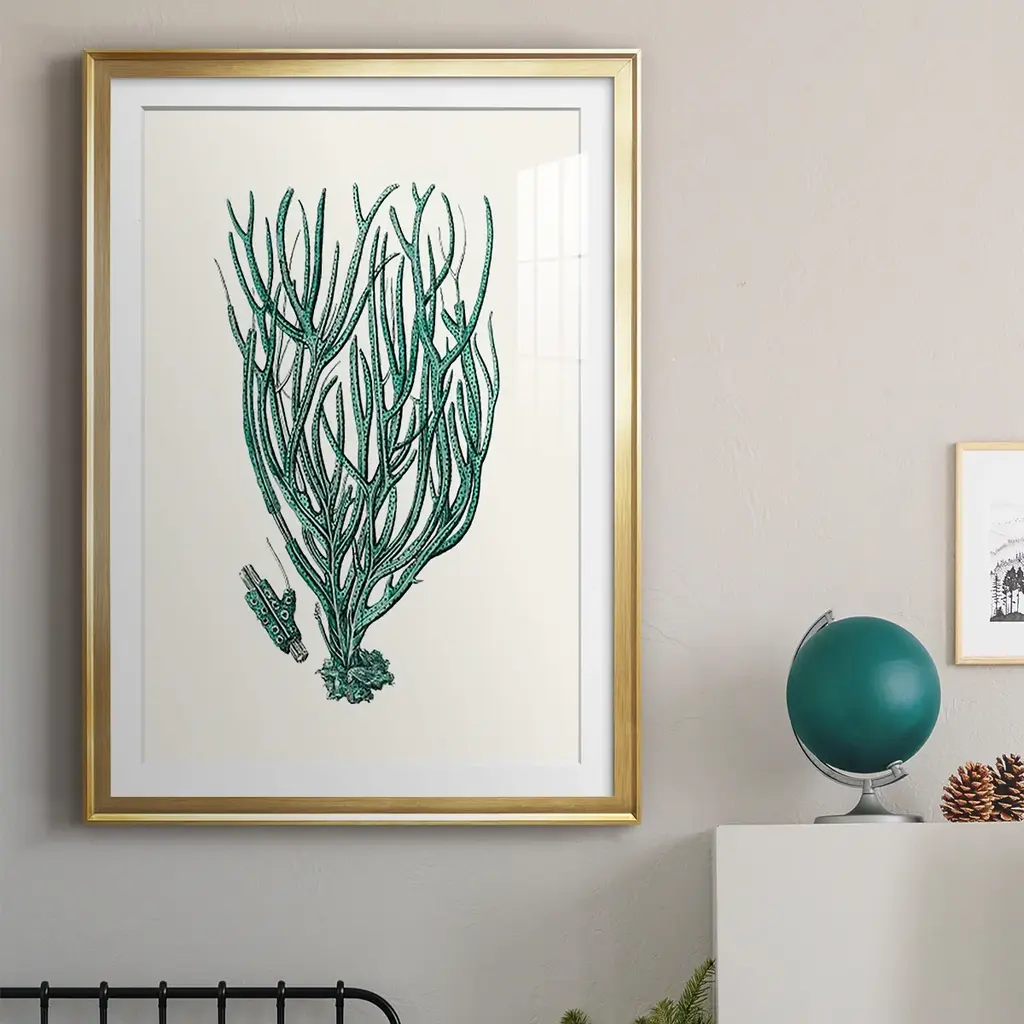 Antique Coastal Coral VIII Premium Framed Print - Ready to Hang A Premium Framed Print created to last. Framed in distressed wood and available in an array of sizes and colors Featuring a beveled a solid wood stretcher bar, each piece comes ready to hand 4 SIZES AVAILABLE 30.5''X42.5'' - Overall Size 26.5'X36.5'' - Overall Size 22.5''x30.5'' - Overall Size 18.5''x24.5'' - Overall Size Each piece is made to order. Each piece comes with hanging hardware. Made in the USA Ready to Hang Giclee Paper Print Acrylic Glass Beveled Matt Board