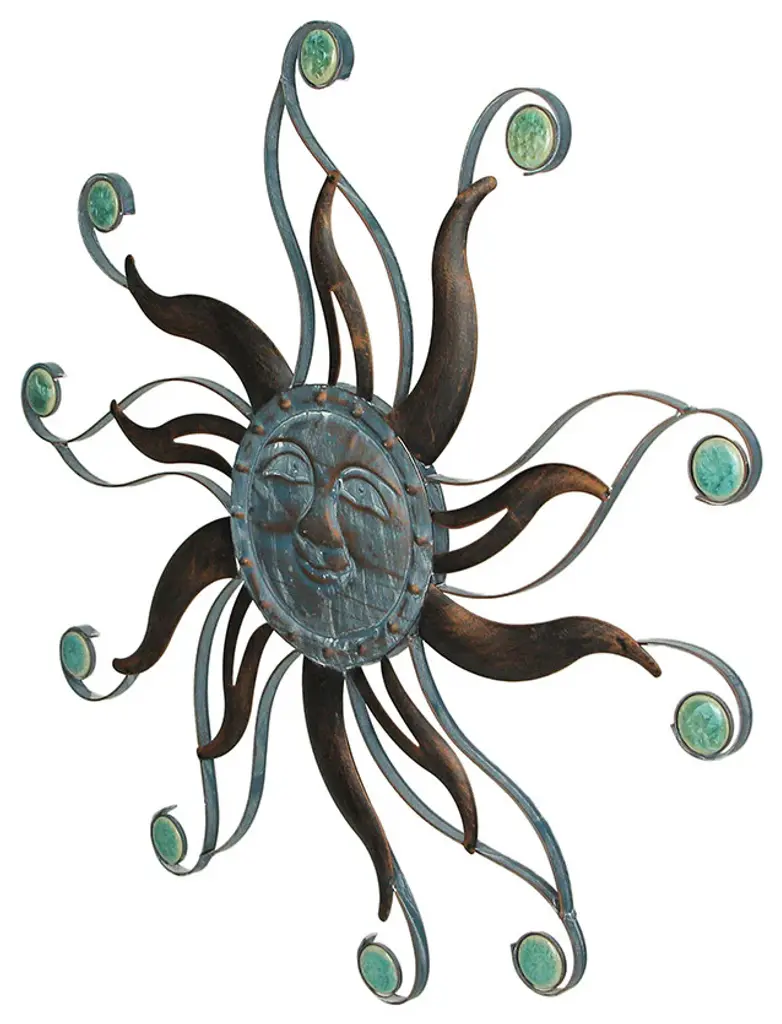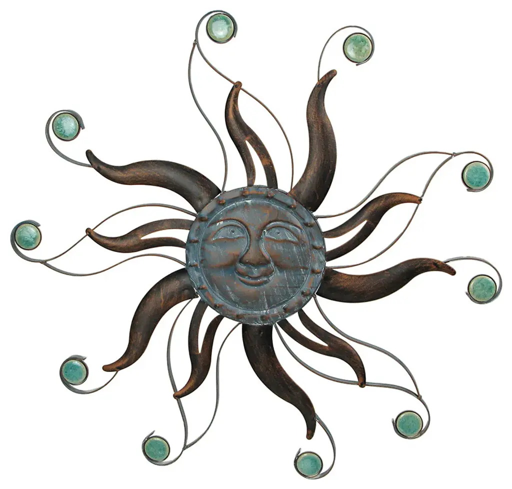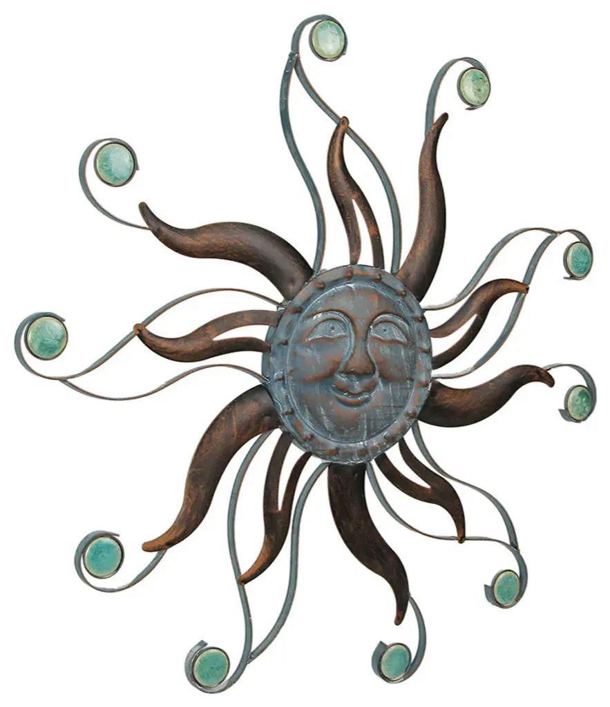 Generous Dimensions - This sun face wall decor boasts a substantial 22-inch diameter and 0.5-inch depth, making it a captivating centerpiece for any wall in your home.Robust Craftsmanship - Crafted from sturdy metal, this piece ensures years of indoor or outdoor display, embodying both durability and style for your living spaces.Artistic Finish - Its antiqued copper finish, combined with intricate ceramic bead accents, infuses vibrant colors, adding a touch of elegance to any wall it graces.Effortless Installation - Designed for convenience, a built-in keyhole hanger on the back allows for quick and easy hanging, transforming your space with minimal effort.Perfect Gift - Whether for yourself or your loved ones, this sun face wall decor serves as an ideal gift idea. Its artistic allure and enduring quality make it a thoughtful and captivating present, elevating any space it adorns.Embrace the warmth of the sun with our exquisite aged copper finish metal smiling sun face wall hanging, a charming addition to your indoor or outdoor decor. Measuring 22 inches in diameter and 0.5 inches deep, this artwork exudes personality, showcasing intricate open and closed work metal rays, along with oxidized verdigris blue-gray embellishments and mottled blue-green ceramic bead accents. This delightful sun face wall hanging becomes an instant focal point, radiating charm on any wall it graces, whether in your home, kitchen, patio, or garden. Its versatile design effortlessly blends with various decor styles, adding a touch of artistic elegance to your space. Hung indoors, it becomes an accent piece, enhancing the ambiance of your living areas. Outdoors, it elevates your patio or garden, infusing nature''s charm into your surroundings. Not just a decoration, it is a statement piece, reflecting the artistry of your home. Its large size and intricate detailing make it an exceptional housewarming gift, sure to bring smiles to the faces of your loved ones. Welcome the sun into your home and gift an exquisite piece of art that brightens every corner it graces.