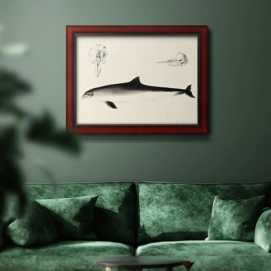 Antique Dolphin Study Ii Premium Framed Canvas- Ready To Hang - 16x20 - Mahogany
