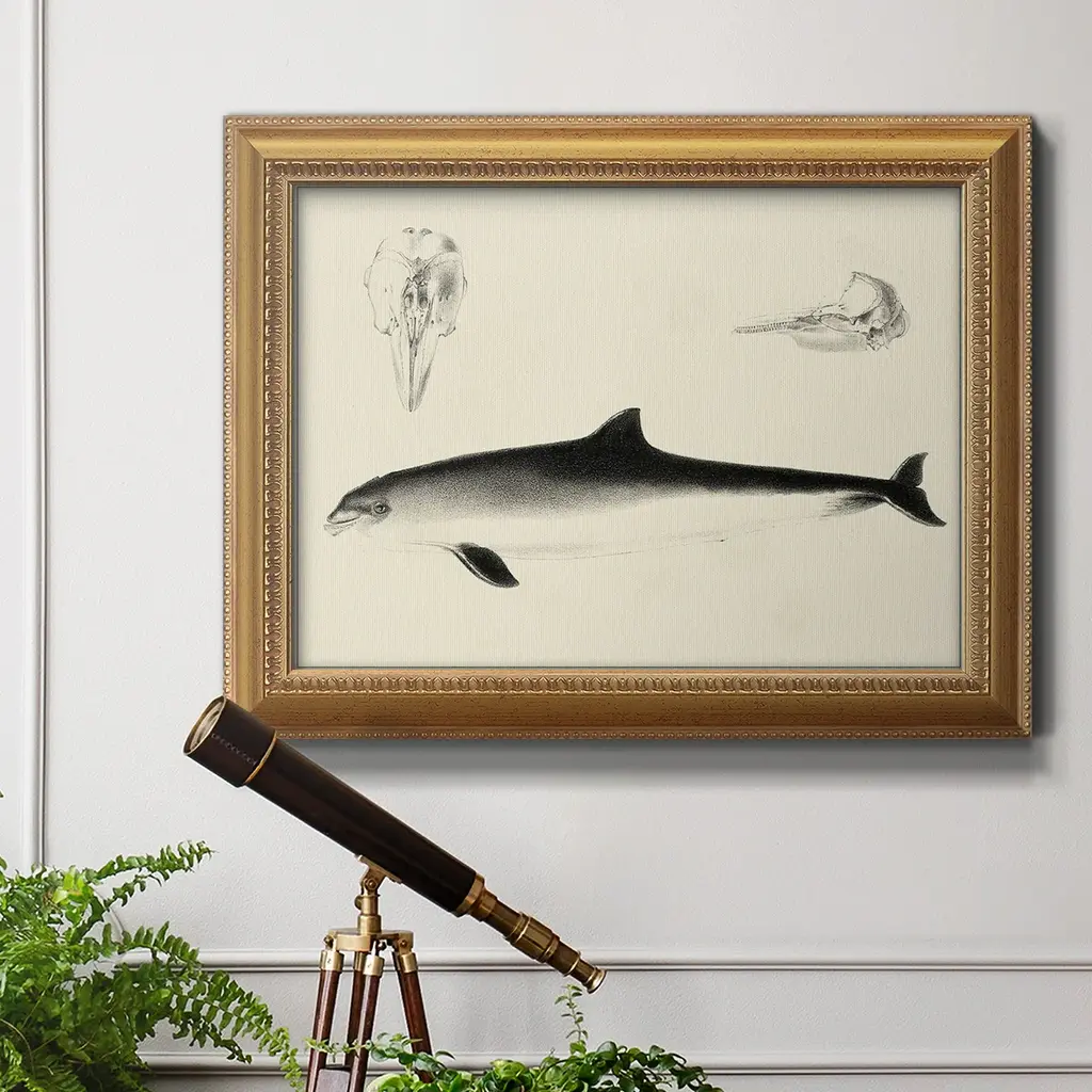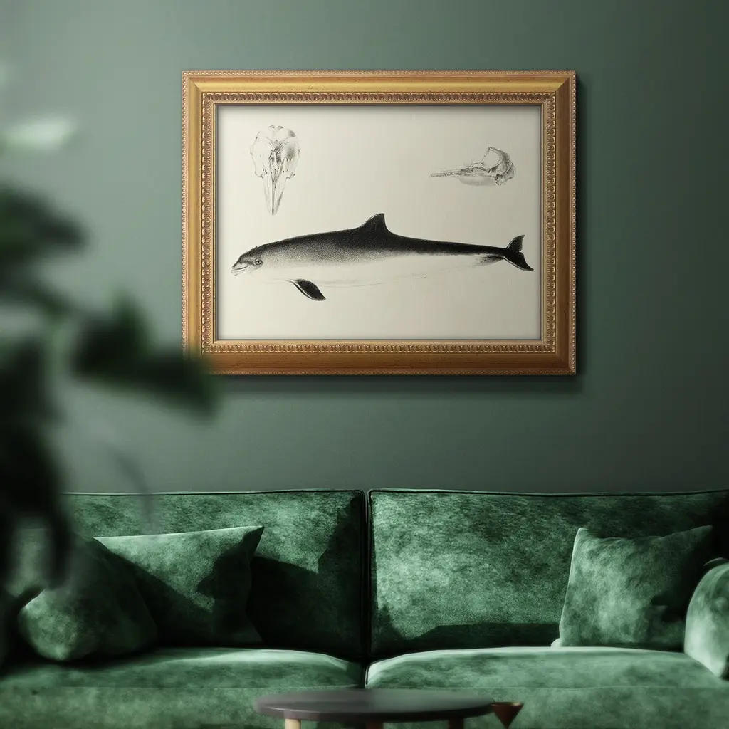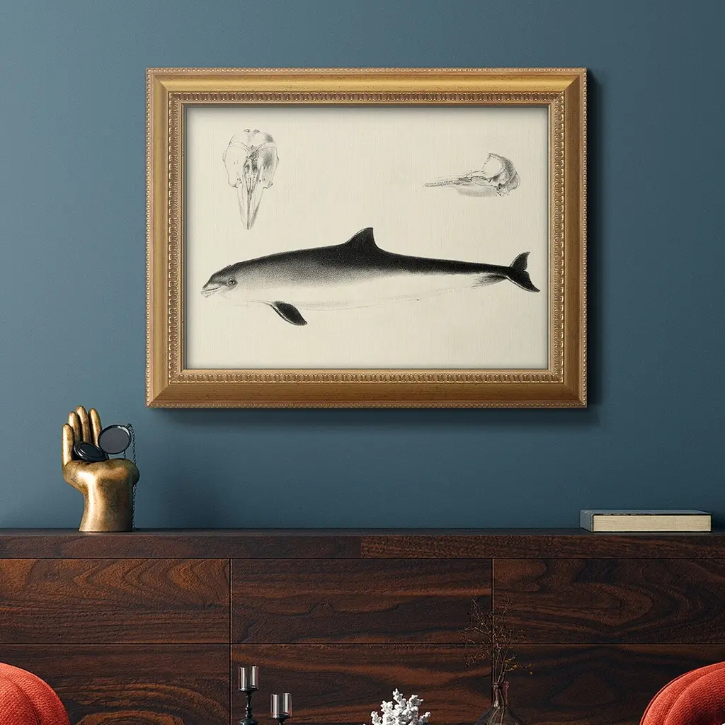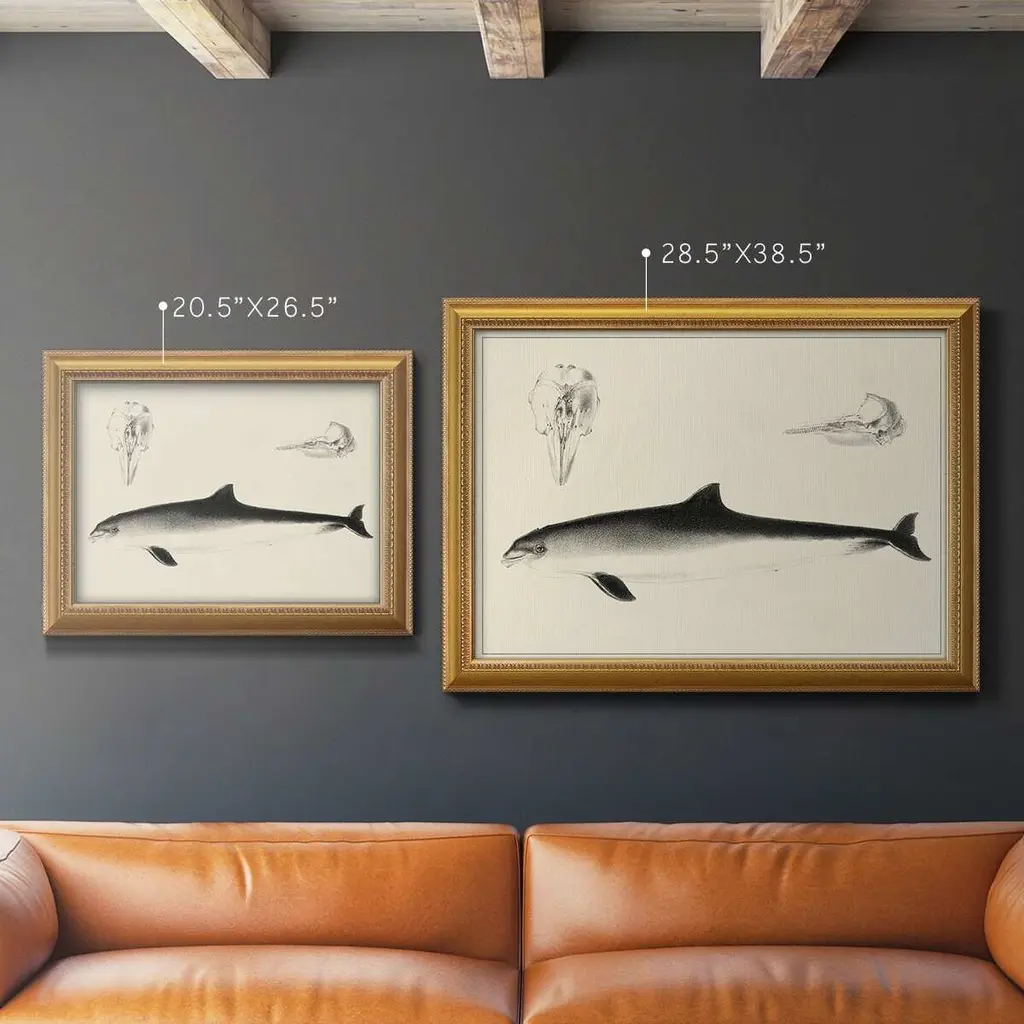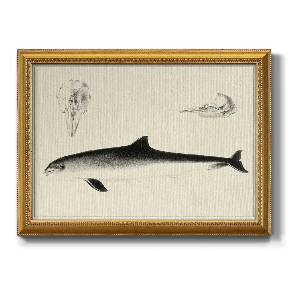 Antique Dolphin Study Ii Premium Framed Canvas- Ready To Hang - 18x27 - Gold