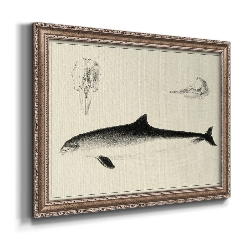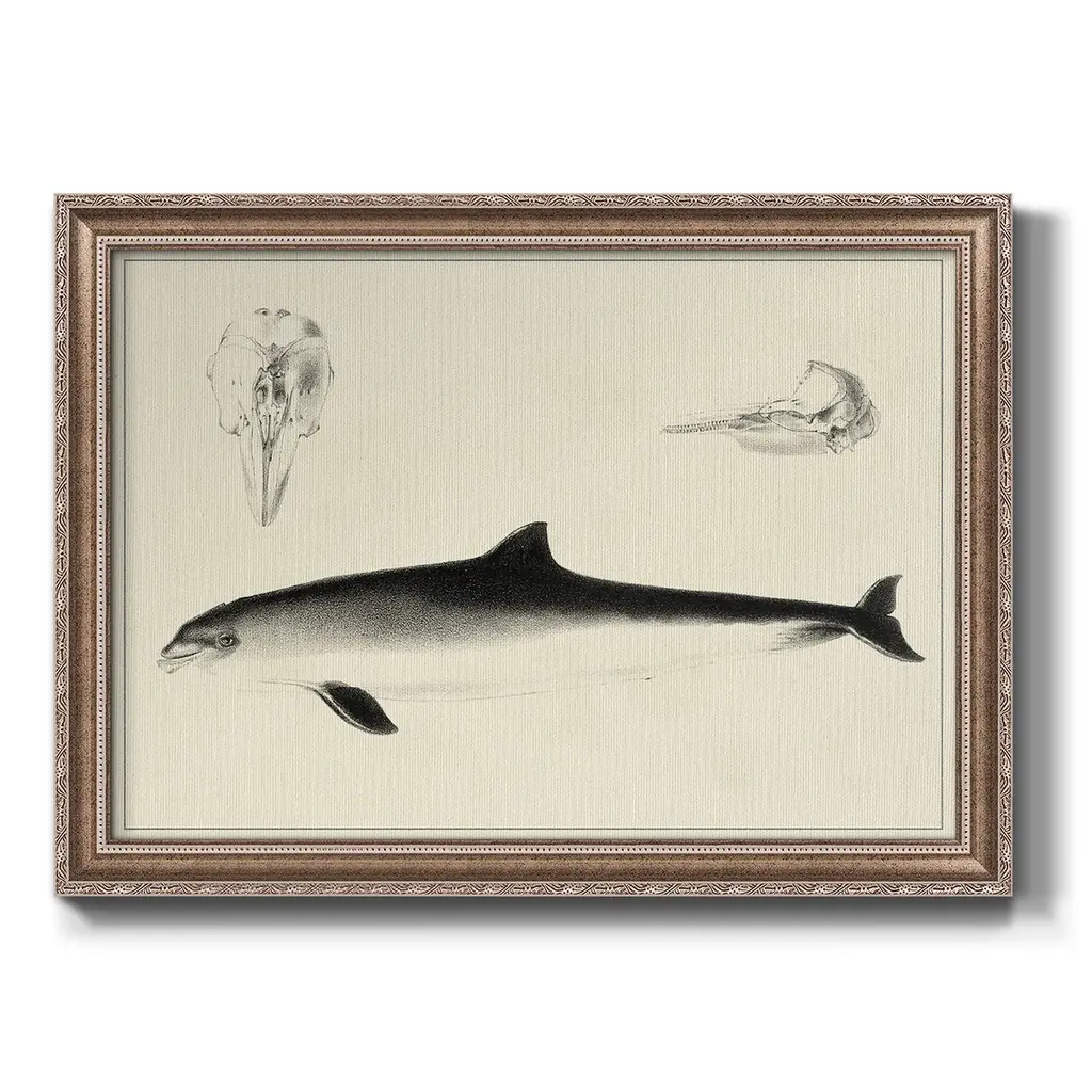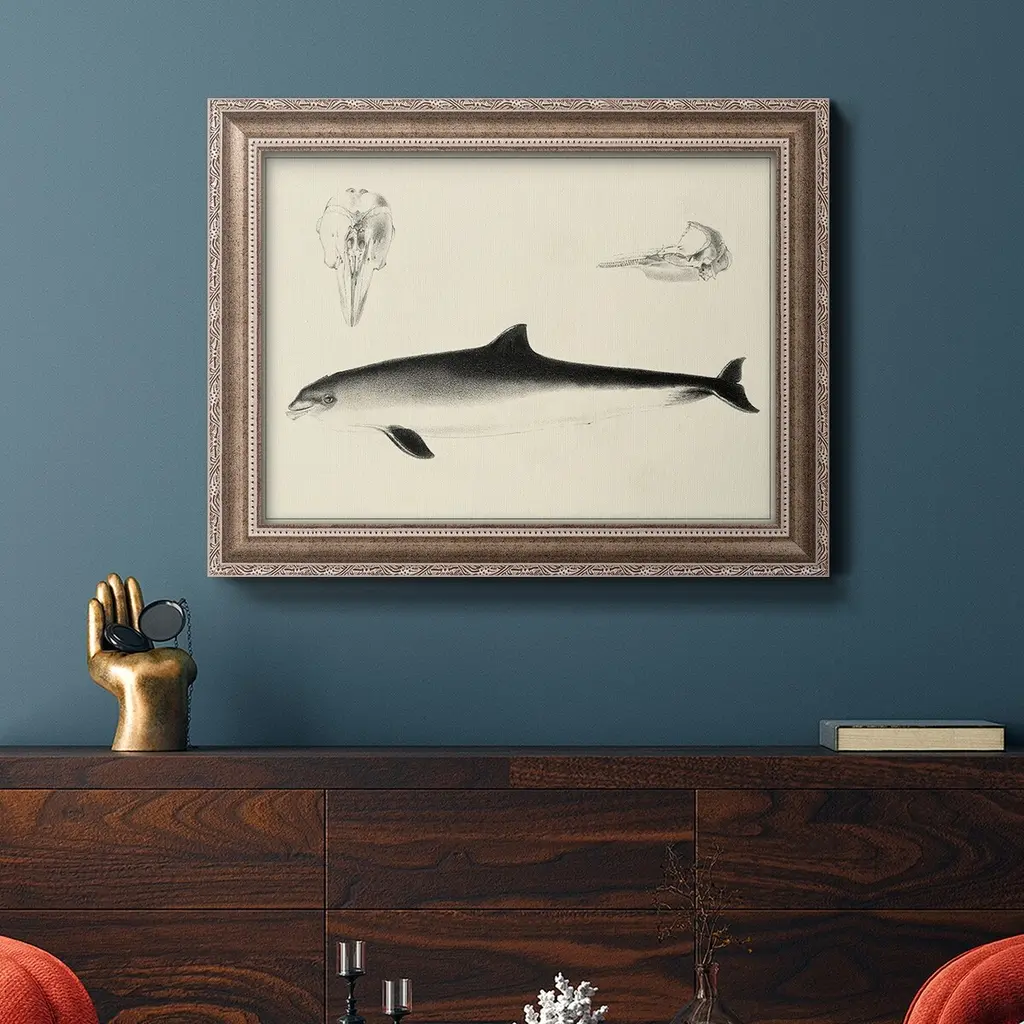 Antique Dolphin Study Ii Premium Framed Canvas- Ready To Hang - 18x27 - Pewter
