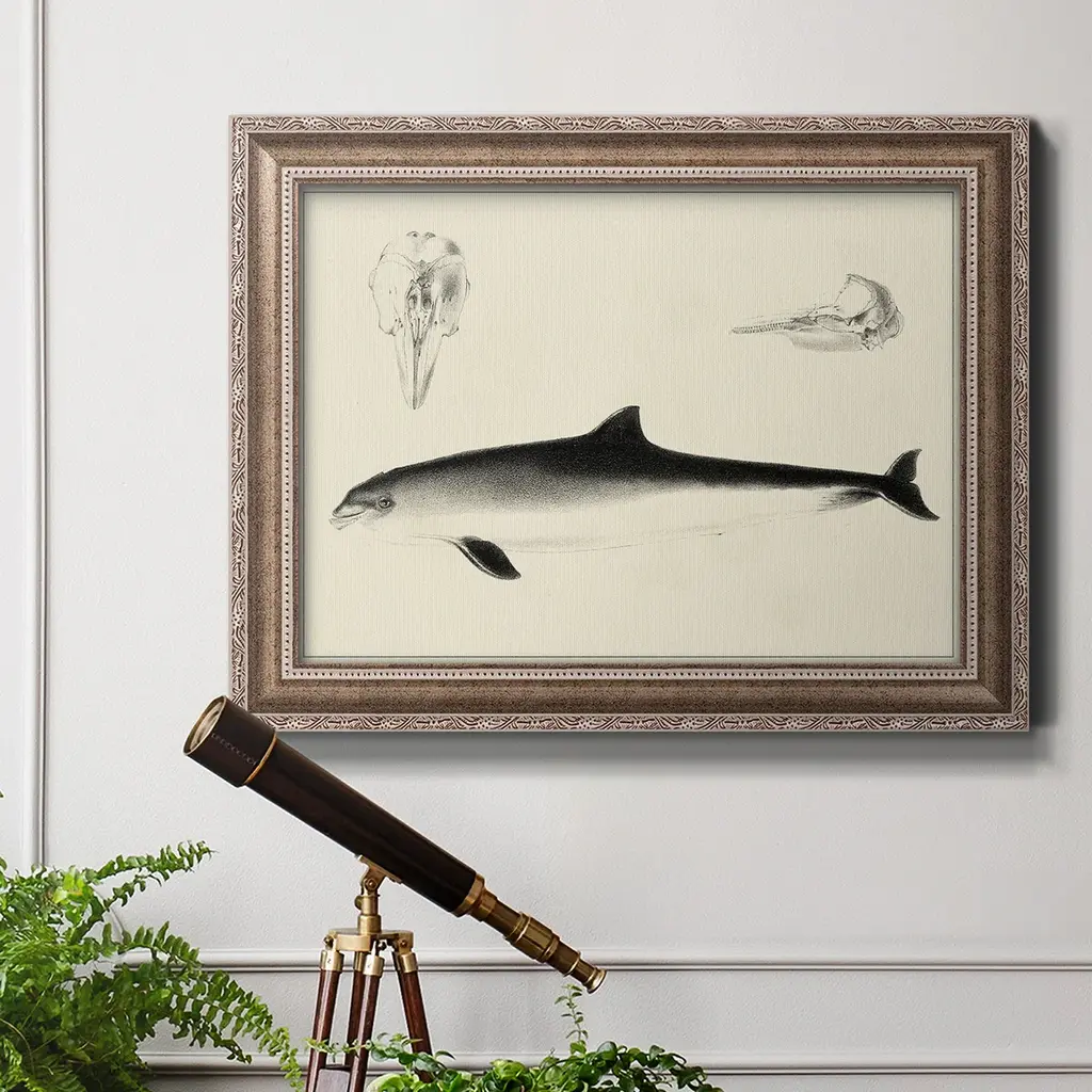 Antique Dolphin Study Ii Premium Framed Canvas- Ready To Hang - 24x36 - Pewter