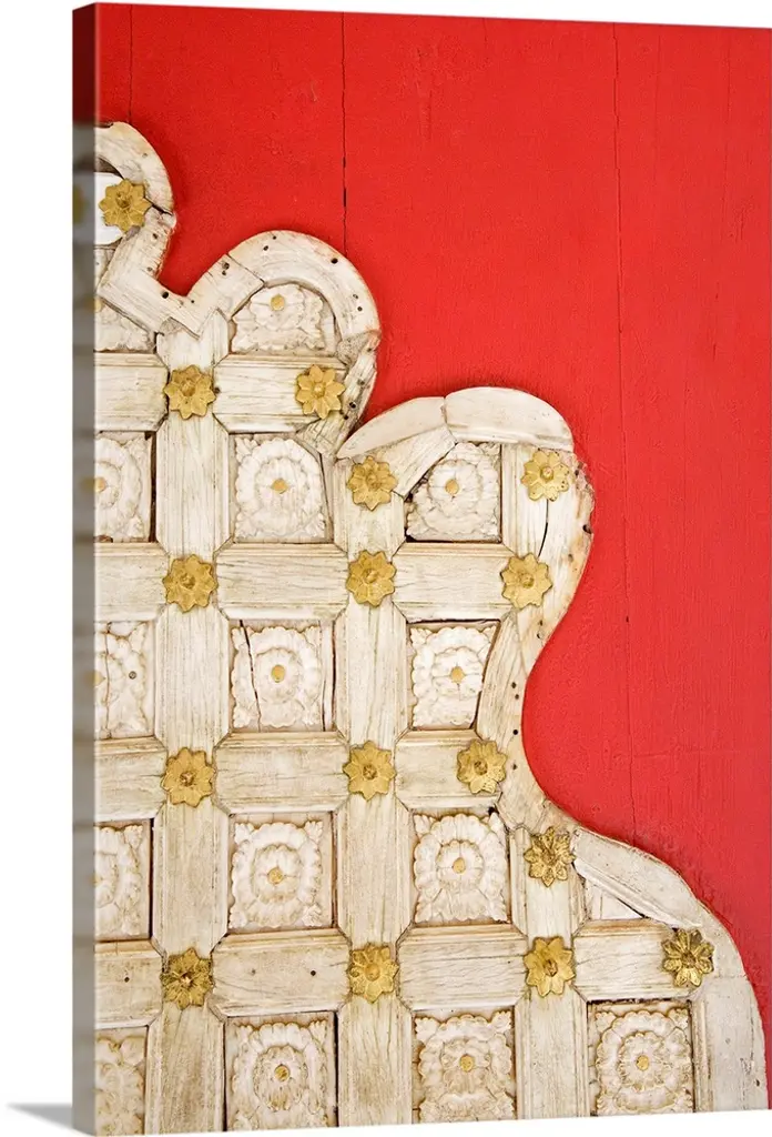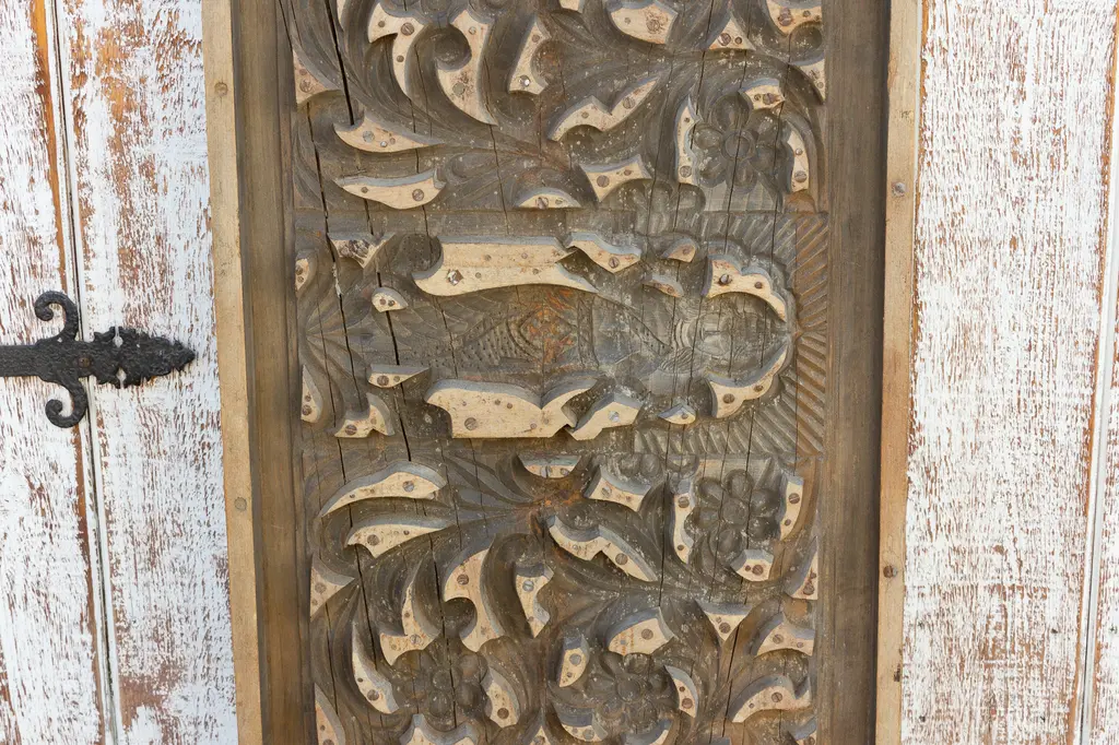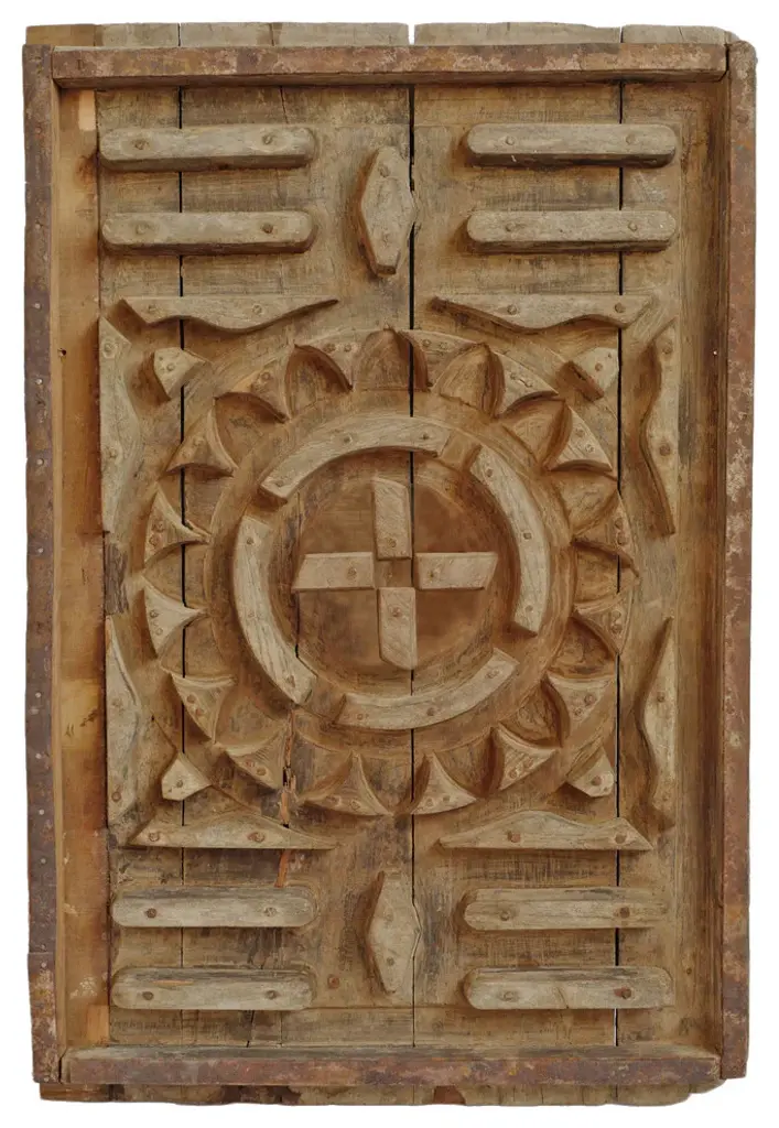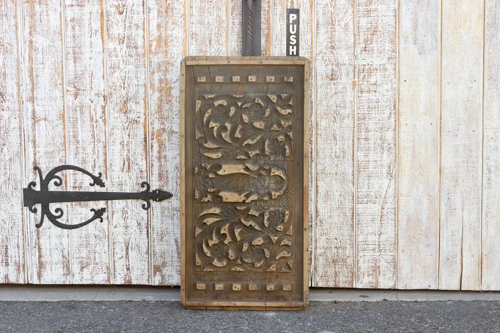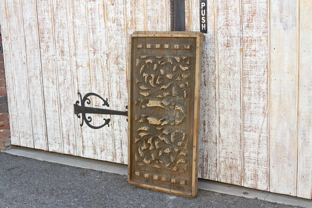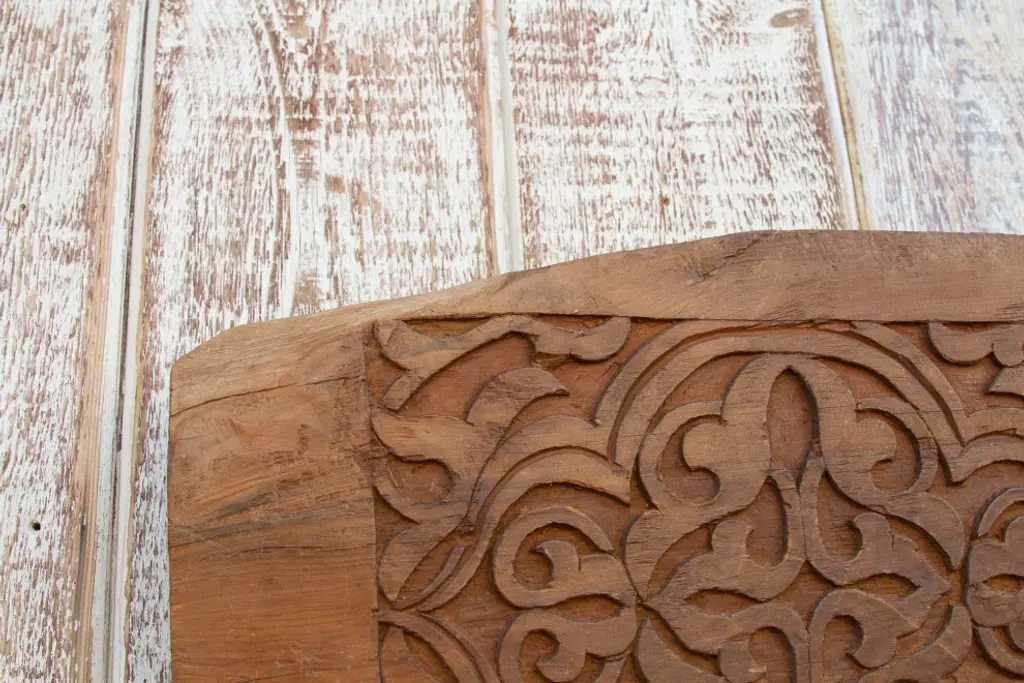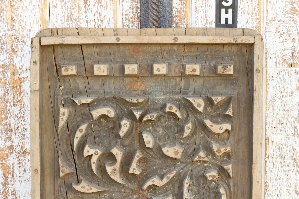 Antique hand-carved teak wood block panel, originally used to print designs onto fabrics in India.