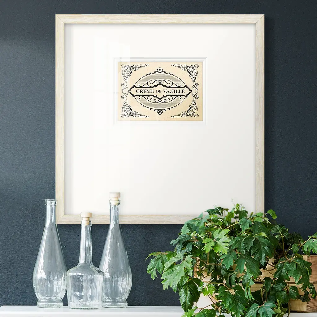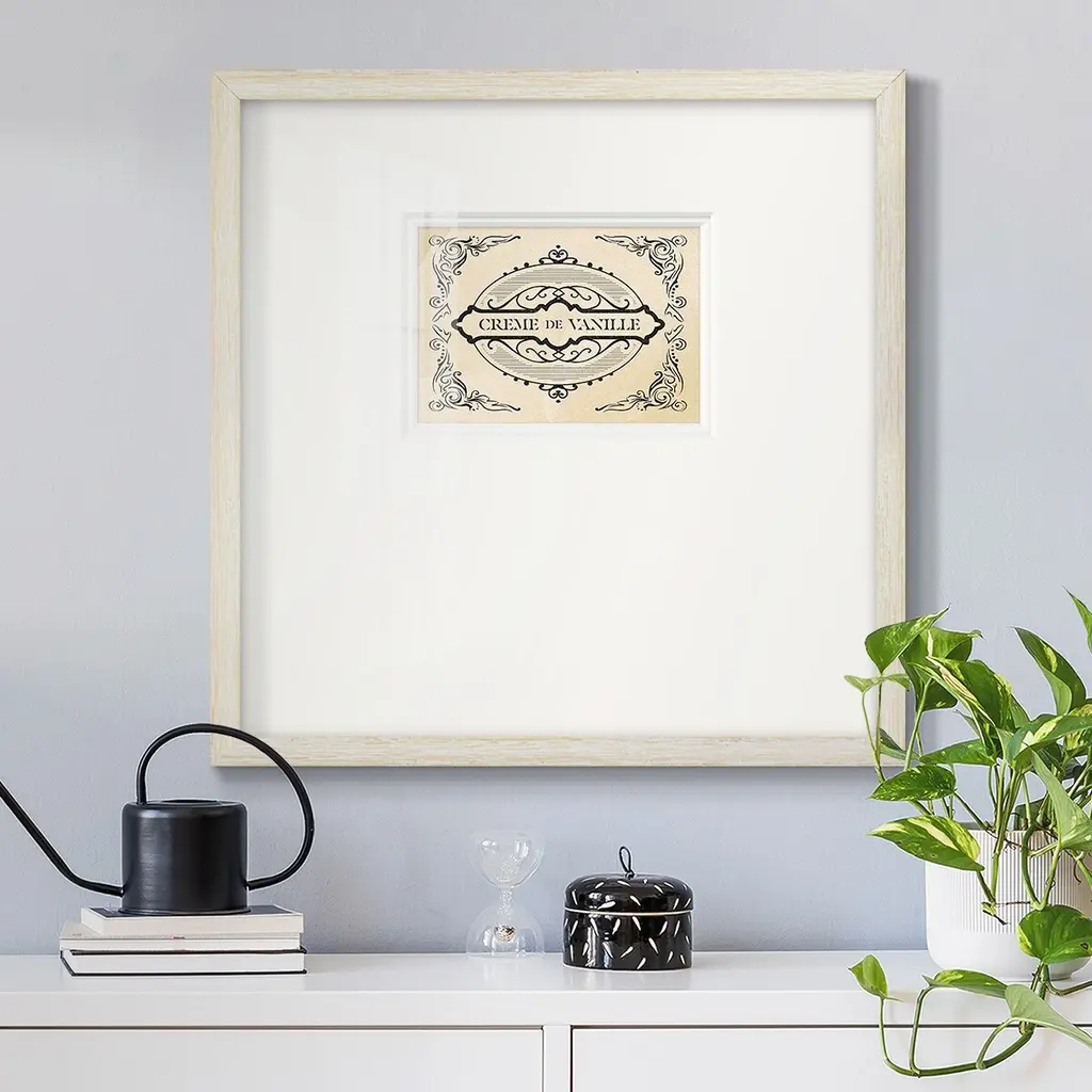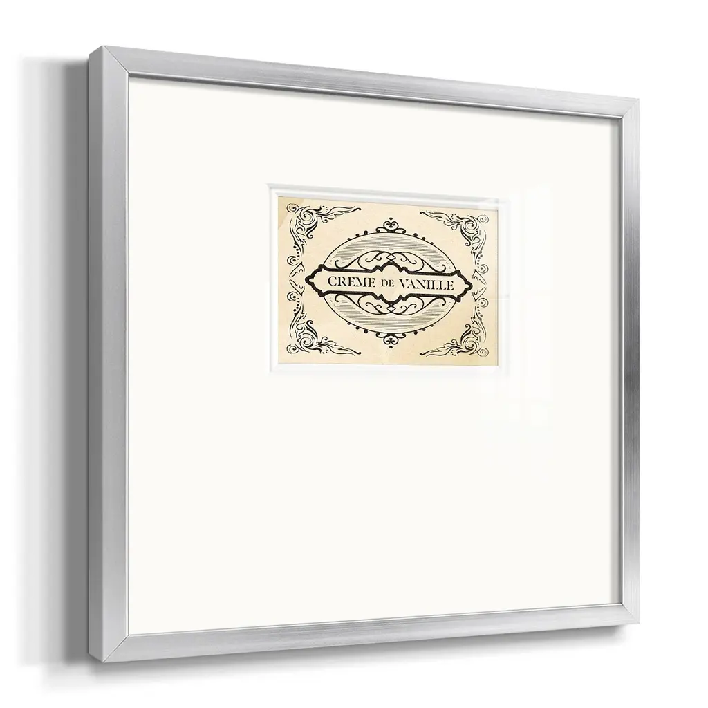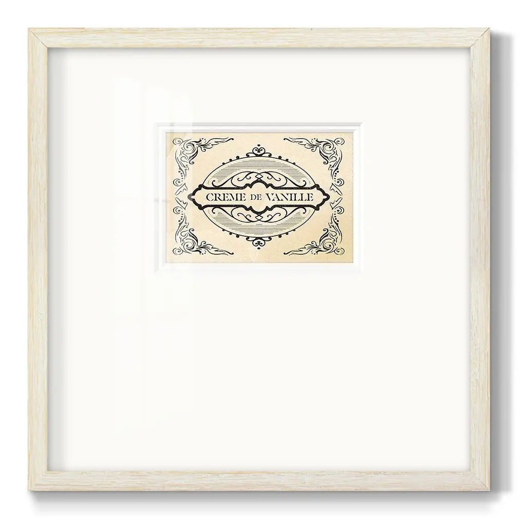 Antique French Label IIPremium Framed Print A framed cold pressed paper print featuring superior double matting and quality frame. 2 SIZES AVAILABLE 16''X16''' - Overall Size 20''X20''' - Overall Size Each piece is made to order. Each piece comes with hanging hardware. Made in the USA Ready to Hang Giclee Paper Print Plexiglass Beveled Matt Board Double Matte Board
