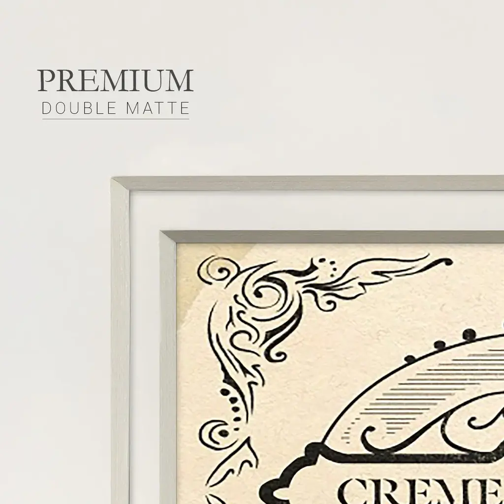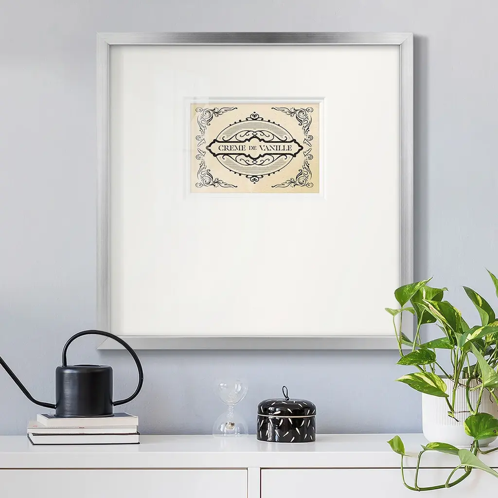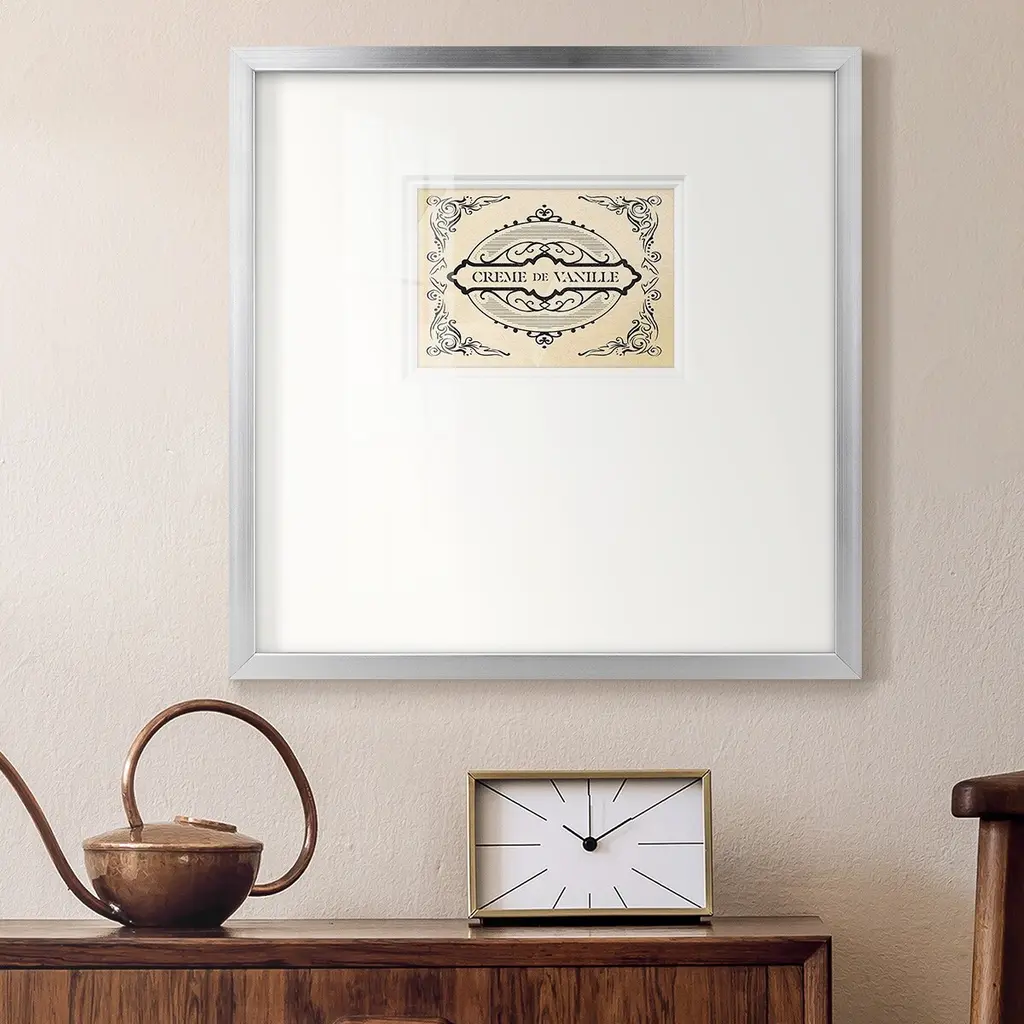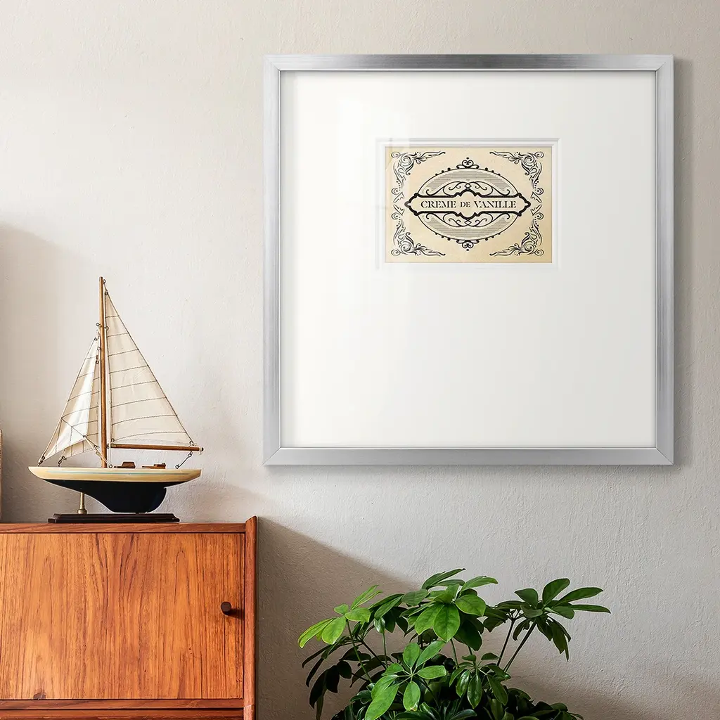 Antique French Label IIPremium Framed Print A framed cold pressed paper print featuring superior double matting and quality frame. 2 SIZES AVAILABLE 16''X16''' - Overall Size 20''X20''' - Overall Size Each piece is made to order. Each piece comes with hanging hardware. Made in the USA Ready to Hang Giclee Paper Print Plexiglass Beveled Matt Board Double Matte Board