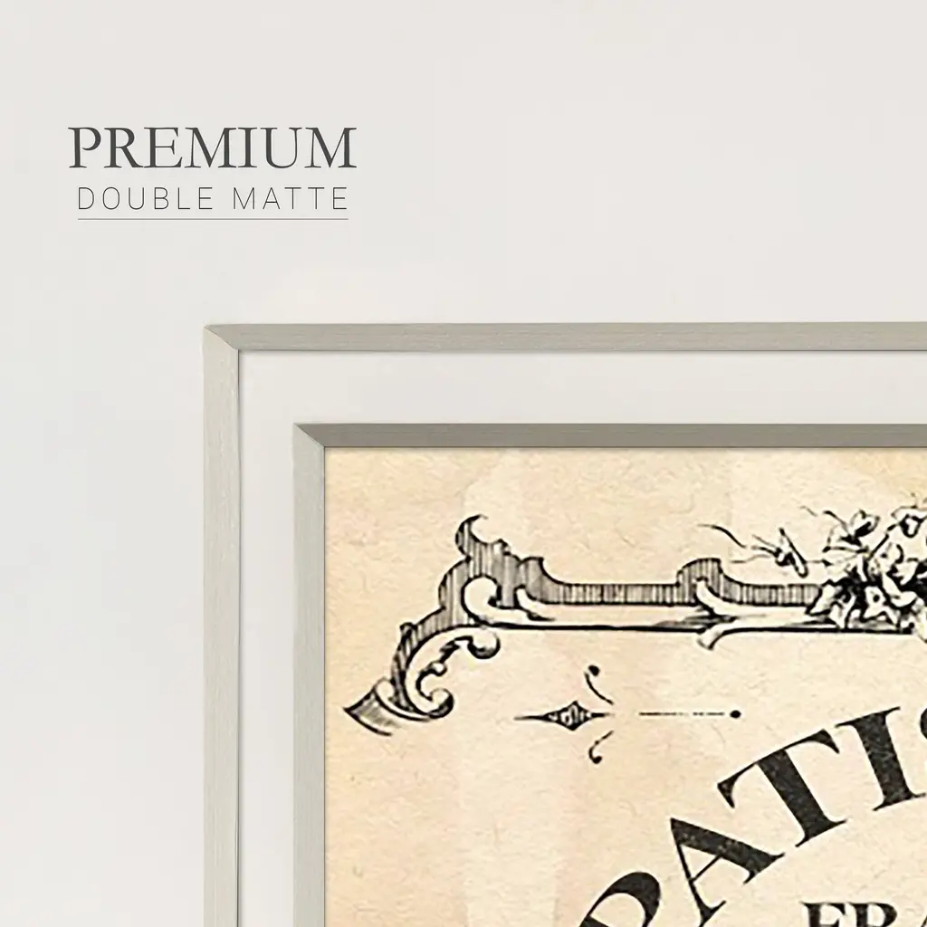 Antique French Label IPremium Framed Print A framed cold pressed paper print featuring superior double matting and quality frame. 2 SIZES AVAILABLE 16''X16''' - Overall Size 20''X20''' - Overall Size Each piece is made to order. Each piece comes with hanging hardware. Made in the USA Ready to Hang Giclee Paper Print Plexiglass Beveled Matt Board Double Matte Board