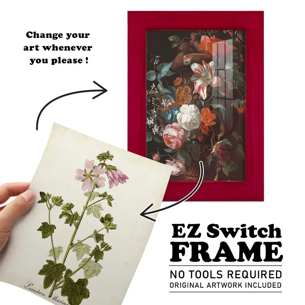 Antique Herb Botanical V -EZ SWITCH Framed Print w/glass-Cherry Red A delightful, framed print. Featuring a solid wood frame with real wood glass. This premium print is giclee quality. In addition, every frame features a removable back and table top stand. This allows you to change your art in the future or to just stand the art on a table for a new look. We are sure you'll enjoy our new series of EZ SWITCH Framed Art. Solid Wood Frame Real Glass Removable / Replaceable Art Built in Tabletop Stand Sizes range from 4x6 up to 12x15 - buy just one or pair them up as sets as you see fit.