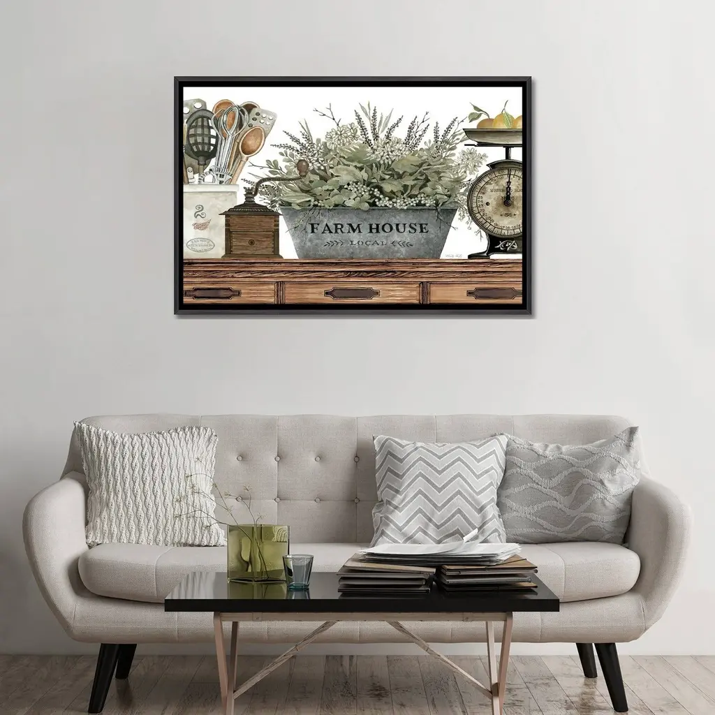 Unique and decorative, this antique kitchen 4 white framed print wall art will leave a lasting impression. This print is a visual artistic expression that allows you to decorate your space in style. Reproduced for you on paper, this hanging decorative accent will be a trendy and fashionable way to dress your walls. Adding this hanging wall art to your space to make your room feel more finished and attractive. Instantly liven up your space with this art that brings color and dimension to your walls. 12" H x 21" W x 1" D