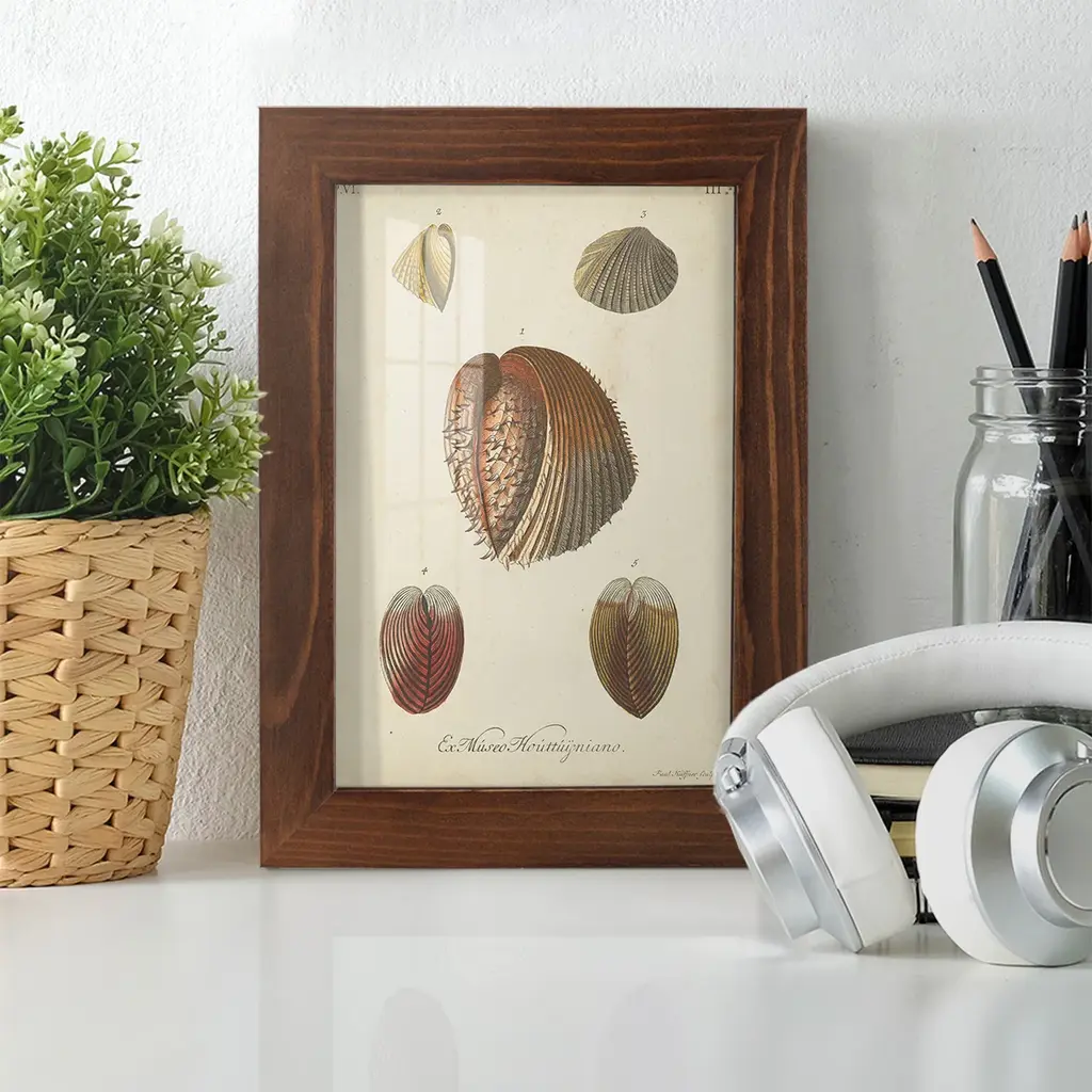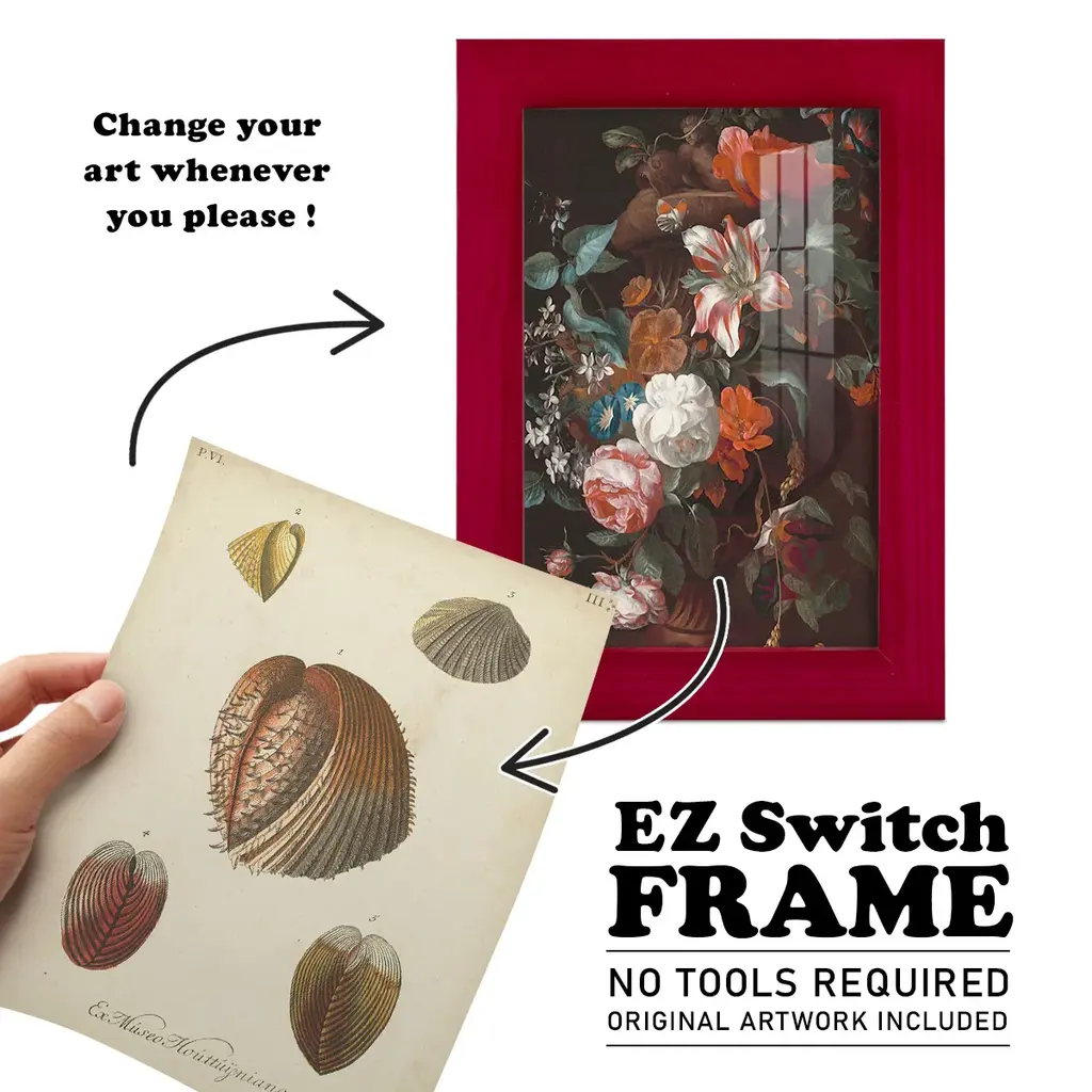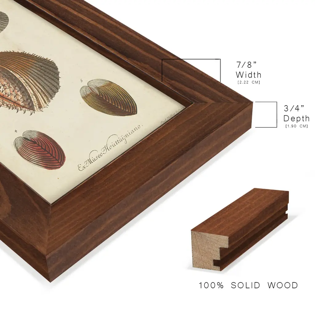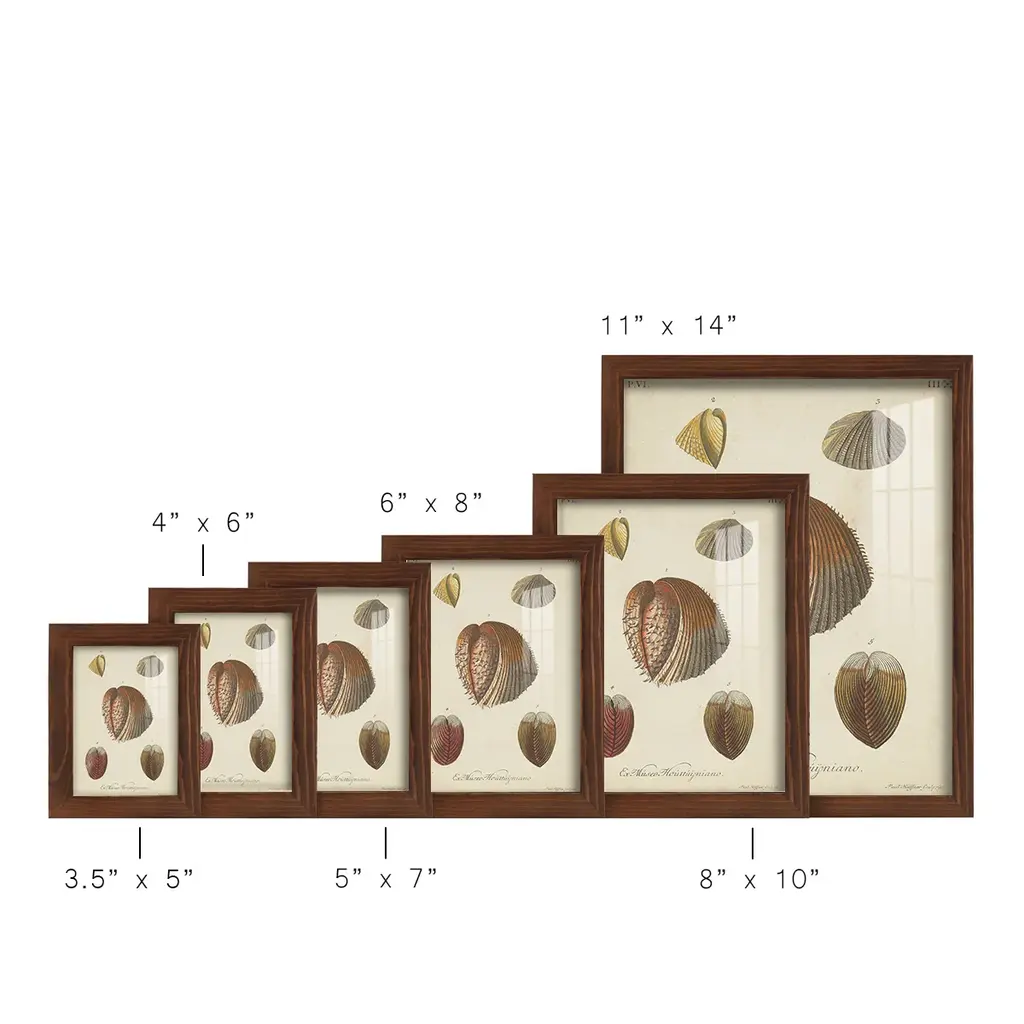 Antique Knorr Shells II -EZ SWITCH Framed Print w/glass-Cherry Red A delightful, framed print. Featuring a solid wood frame with real wood glass. This premium print is giclee quality. In addition, every frame features a removable back and table top stand. This allows you to change your art in the future or to just stand the art on a table for a new look. We are sure you'll enjoy our new series of EZ SWITCH Framed Art. Solid Wood Frame Real Glass Removable / Replaceable Art Built in Tabletop Stand Sizes range from 4x6 up to 12x15 - buy just one or pair them up as sets as you see fit.