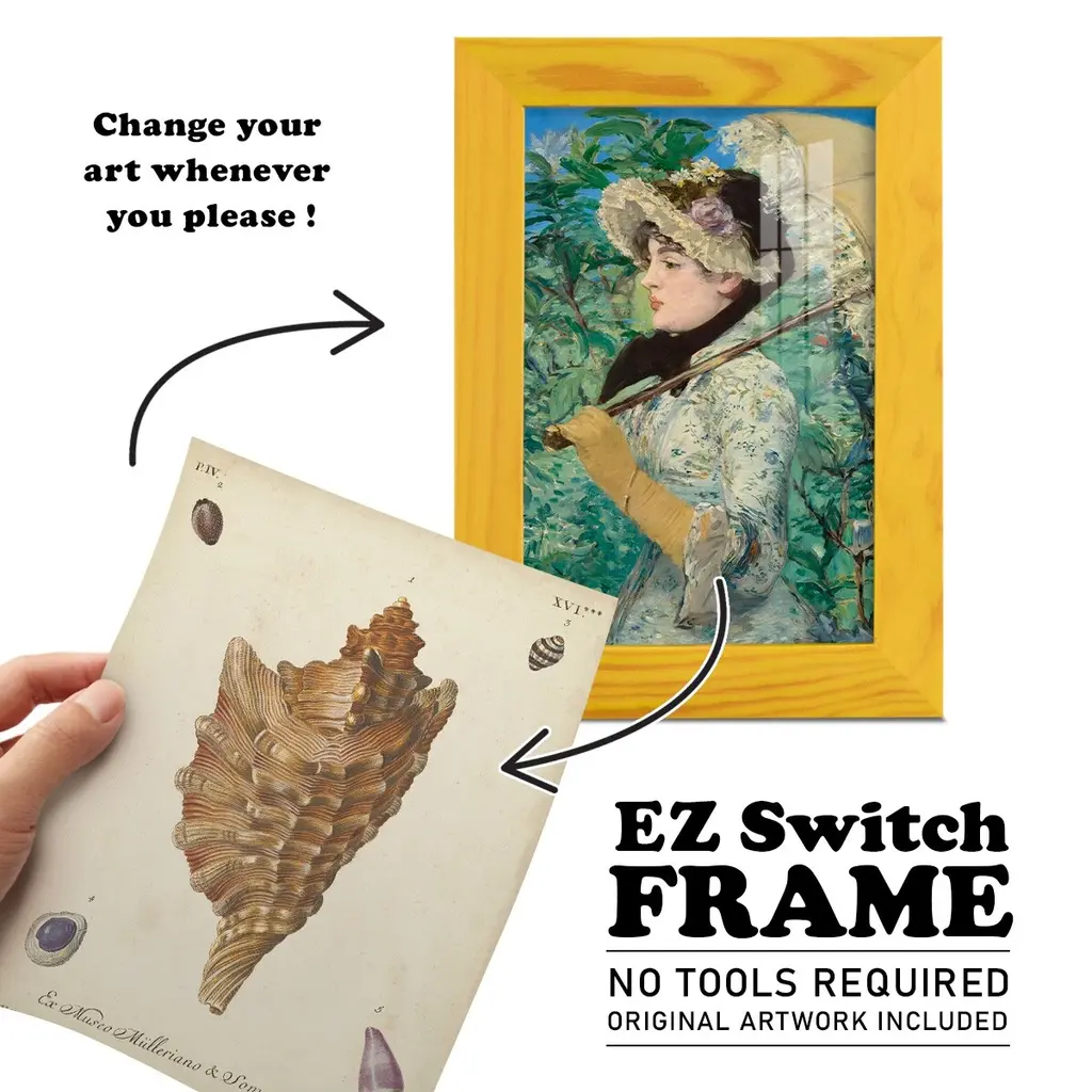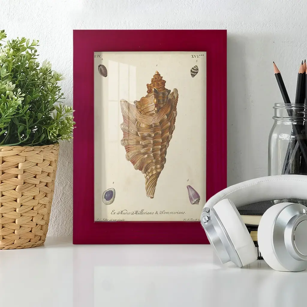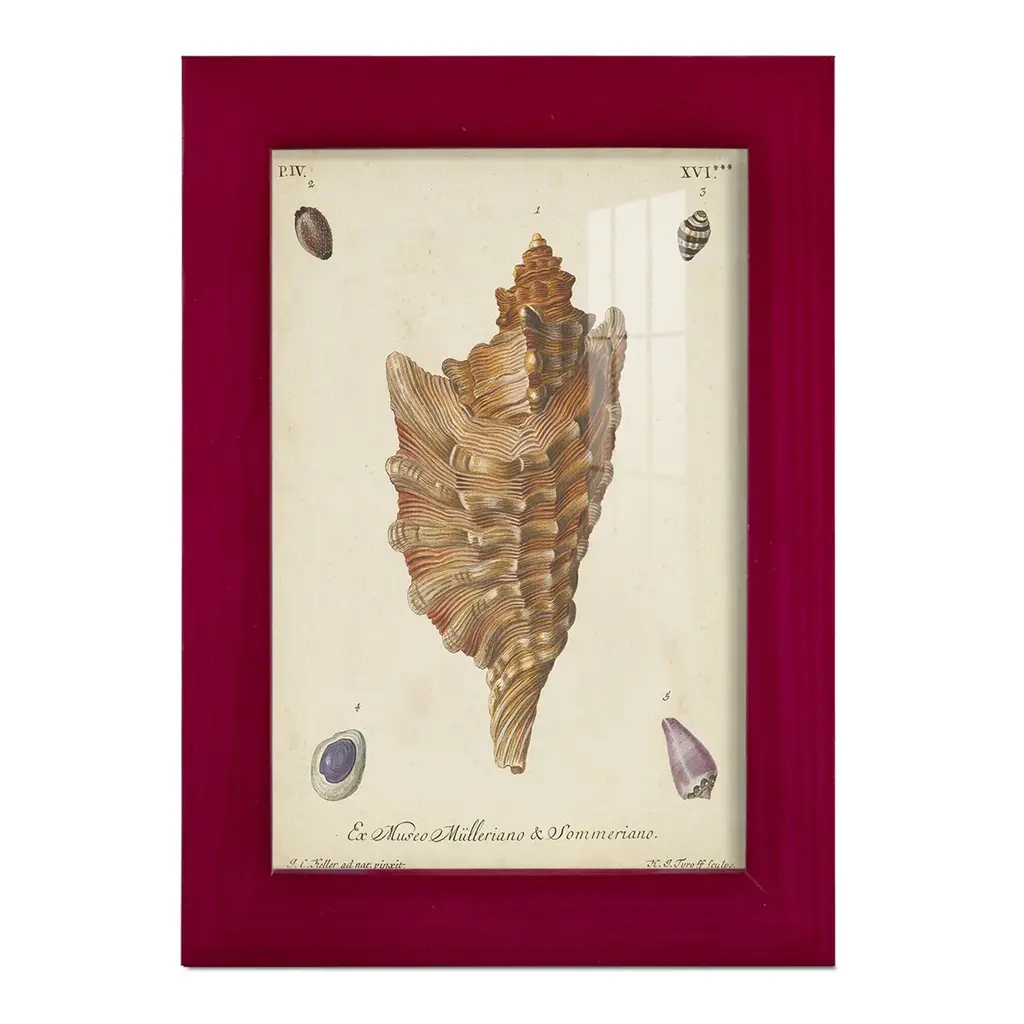 Antique Knorr Shells VI -EZ SWITCH Framed Print w/glass-Cherry Red A delightful, framed print. Featuring a solid wood frame with real wood glass. This premium print is giclee quality. In addition, every frame features a removable back and table top stand. This allows you to change your art in the future or to just stand the art on a table for a new look. We are sure you'll enjoy our new series of EZ SWITCH Framed Art. Solid Wood Frame Real Glass Removable / Replaceable Art Built in Tabletop Stand Sizes range from 4x6 up to 12x15 - buy just one or pair them up as sets as you see fit.