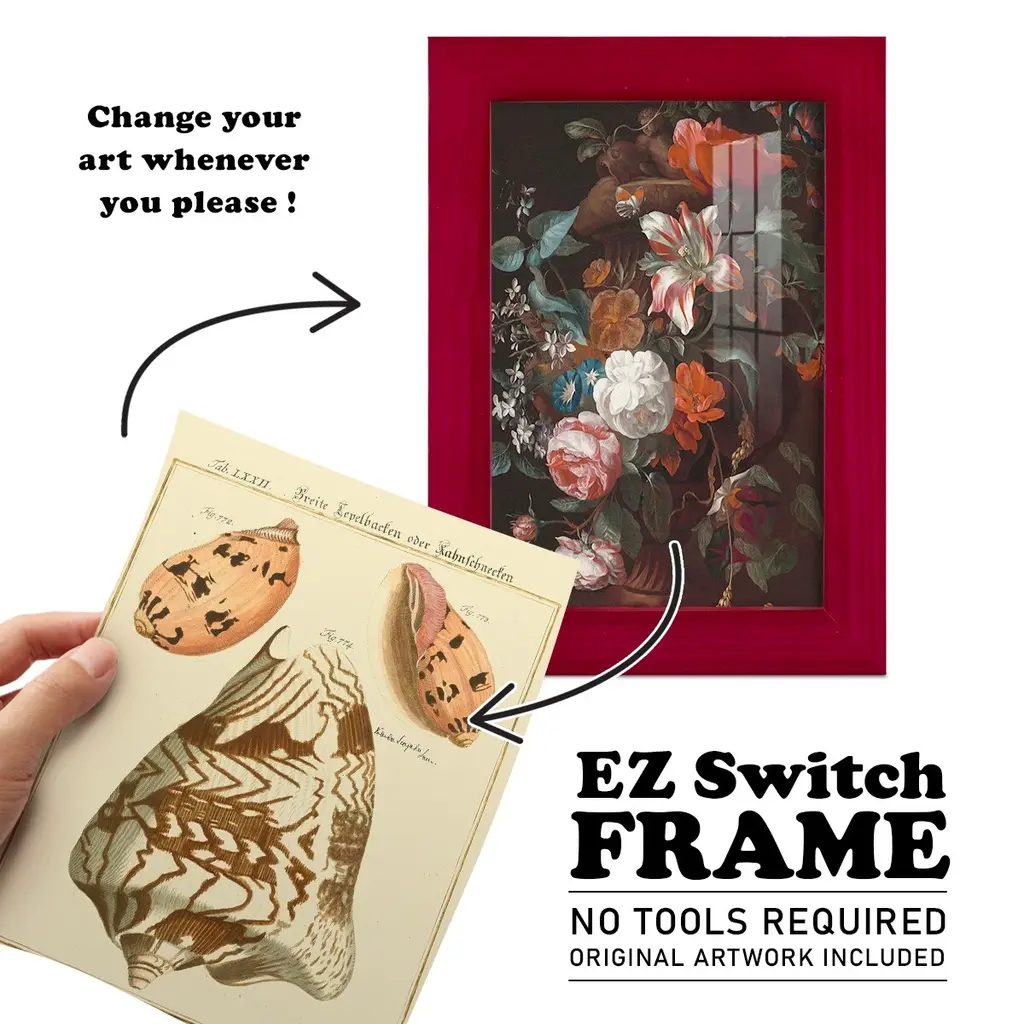 Antique Martini Shells II -EZ SWITCH Framed Print w/glass-Cherry Red A delightful, framed print. Featuring a solid wood frame with real wood glass. This premium print is giclee quality. In addition, every frame features a removable back and table top stand. This allows you to change your art in the future or to just stand the art on a table for a new look. We are sure you'll enjoy our new series of EZ SWITCH Framed Art. Solid Wood Frame Real Glass Removable / Replaceable Art Built in Tabletop Stand Sizes range from 4x6 up to 12x15 - buy just one or pair them up as sets as you see fit.