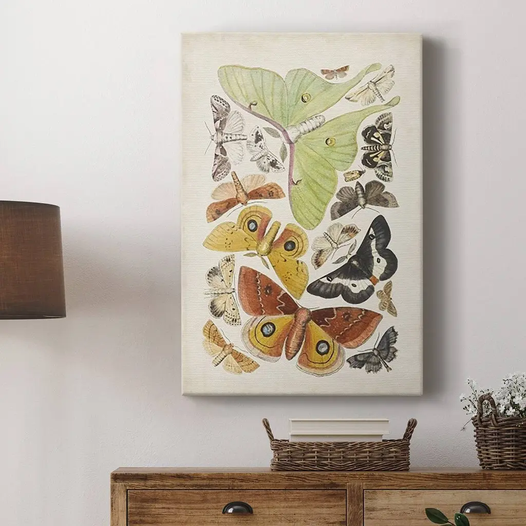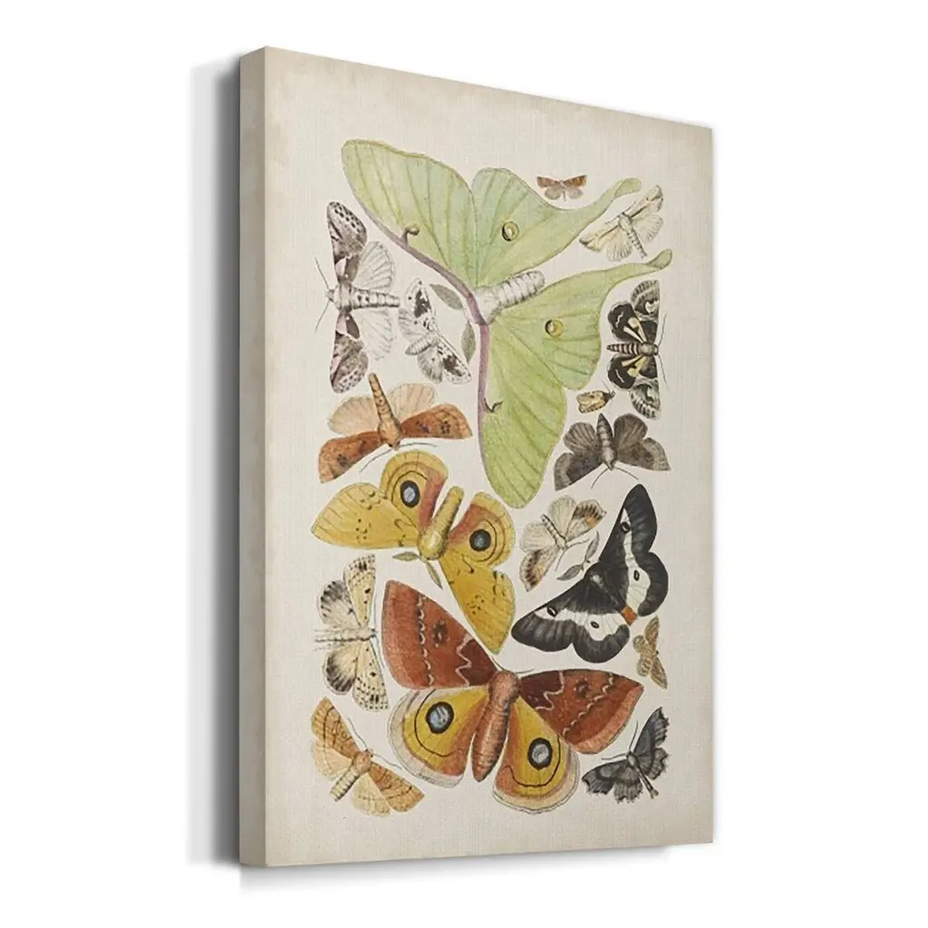 Antique Moths I Premium Gallery Wrapped Canvas - Ready to Hang A premium hand stretched gallery wrapped canvas print created to last. Featuring a beveled a solid wood stretcher bar, each piece comes ready to hand 6 SIZES AVAILABLE 8''X12'' - Overall Size 12''X18'' - Overall Size 18''X27'' - Overall Size 24''x36'' - Overall Size 32''x48'' - Overall Size 40''x60'' - Overall Size Each piece is made to order. Built to Last Each piece comes ready to hang Solid wood stretcher Fade and Water resistant Made domestically